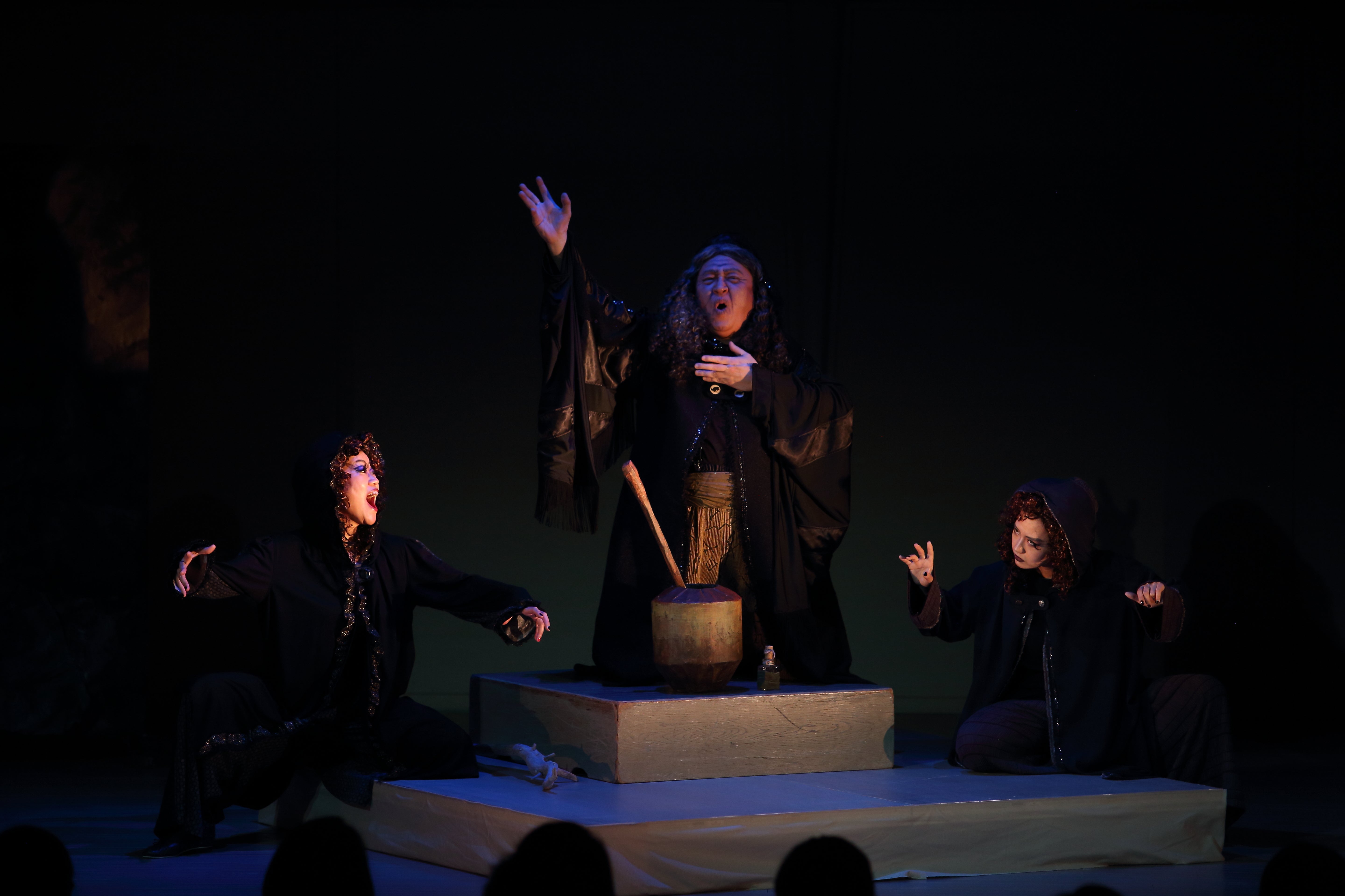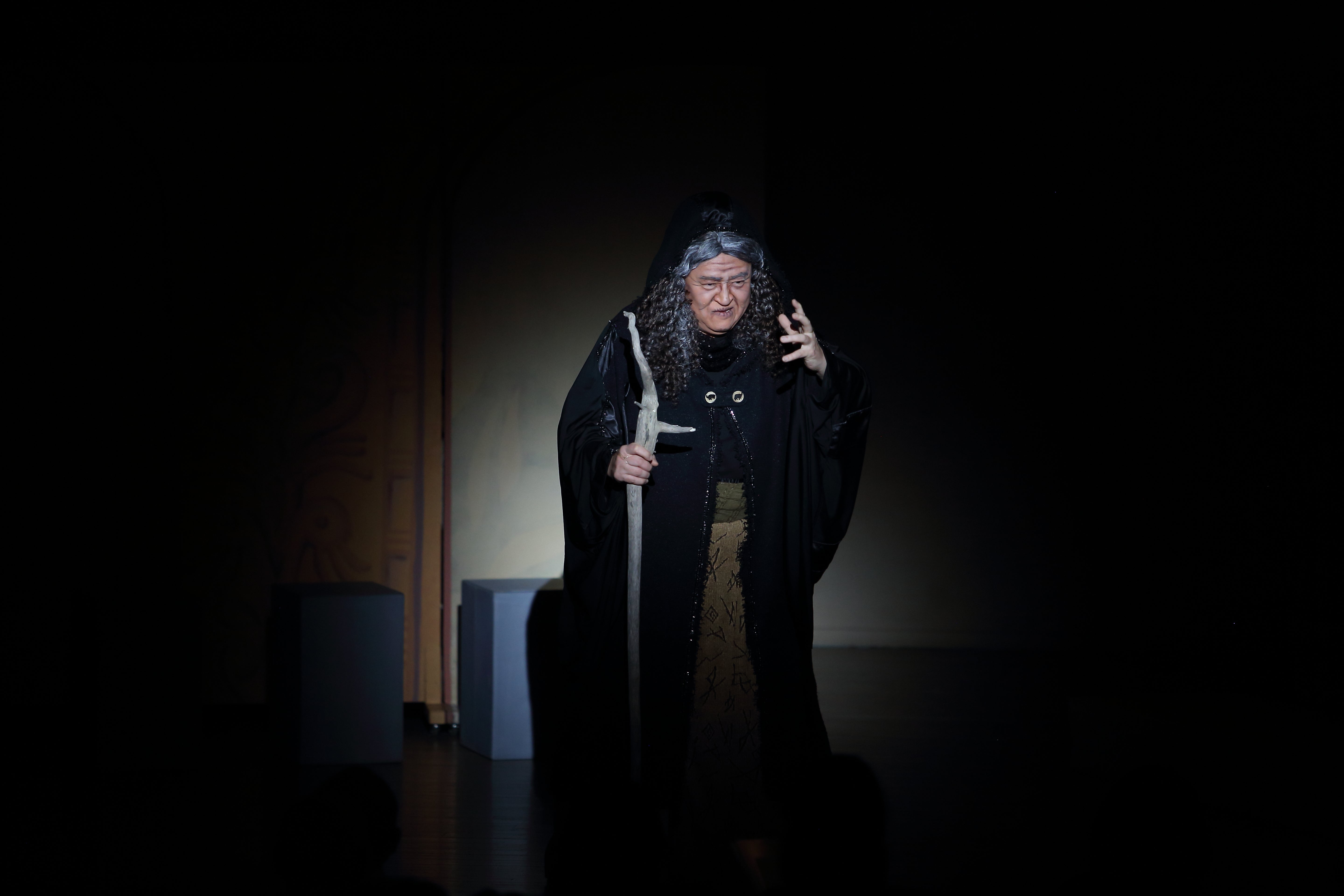 第二幕魔女の洞窟シーン。高らかに歌い上げる牧野正人氏演じる魔女ロバーバ。