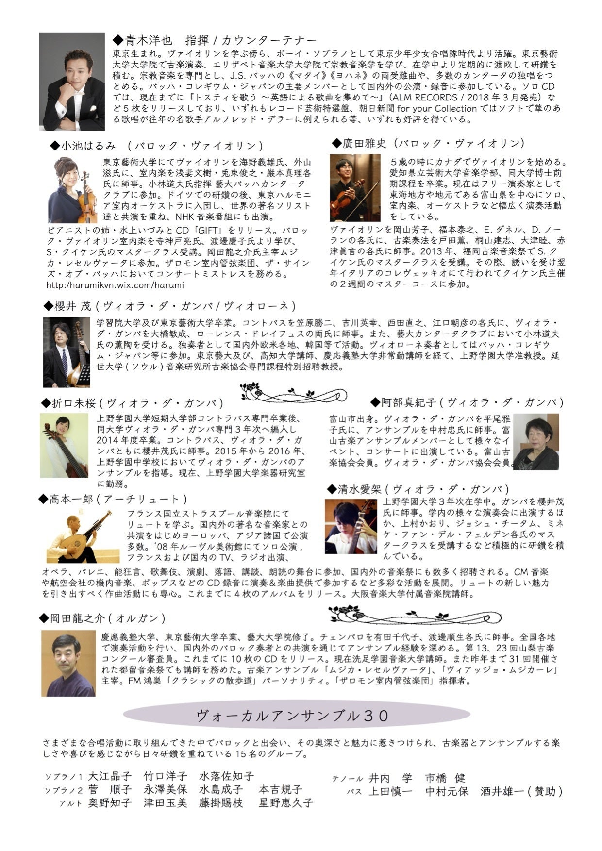 ヴォーカルアンサンブル30 アルトメンバー。そして通奏低音ヴィオラ・ダ・ガンバの折口未桜さん。(上写真)