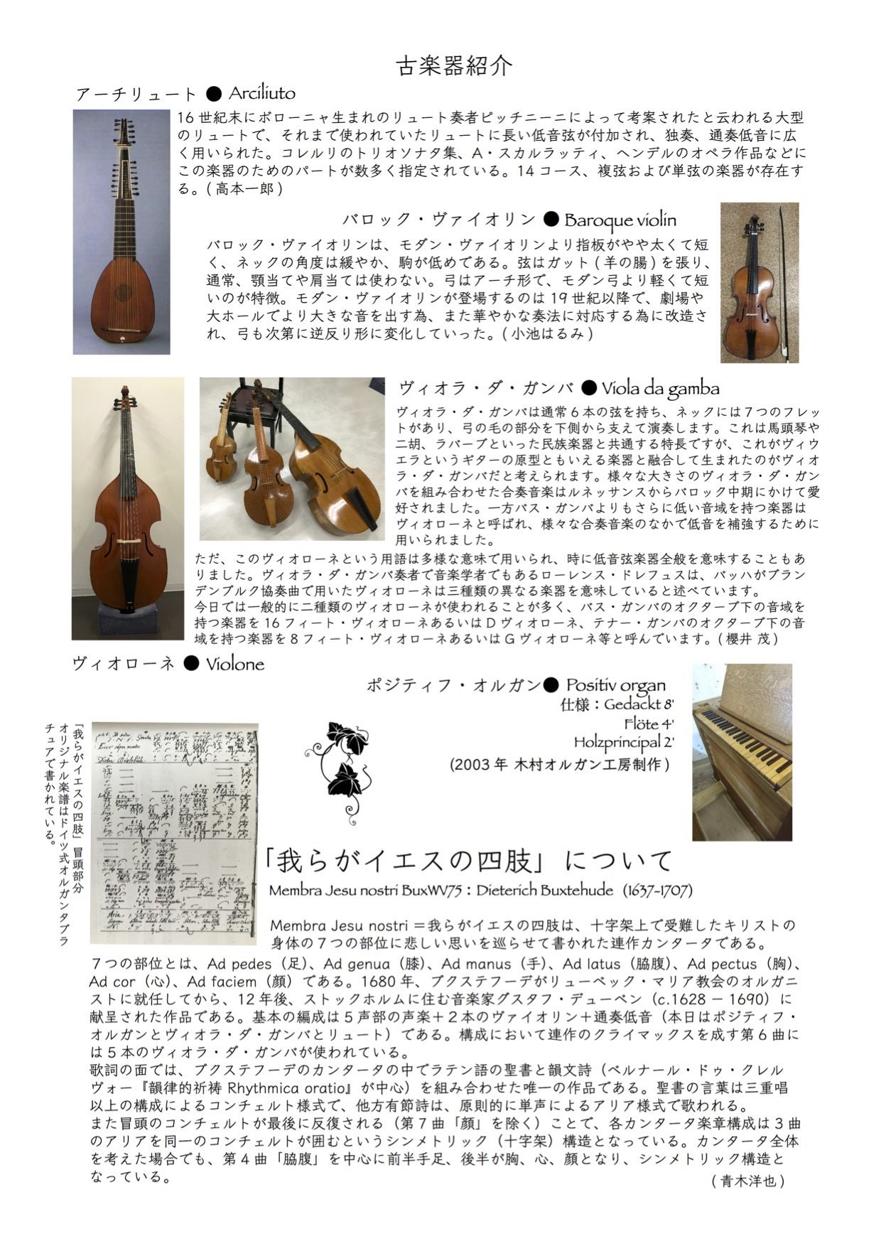 プログラム3ページ目。楽器紹介は奏者ご自身で書かれたものです。