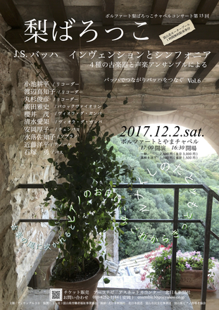 今年も残すところ数日となりました。街中は随分と賑やかですがいかがお過ごしでしょうか。 アンサンブル30では2月12日の高岡市バーバーサイトウでのコンサートを皮切りに5月の「バッハミサ曲ロ短調全曲演奏会」、8月「フーガの技法」、12月「バッハインヴェンションとシンフォニア」など県内外で他主催を含め15回のコンサートを開催することができました。 古楽に関心を寄せ、梨ばろっこコンサートに足を運び、温かく耳を傾けて下さるお一人お一人のおかげでこうして活動を続けてこられたことを深く心に刻み感謝いたします。本当にありがとうございました 。 さて来年、年明け早々1月7日にバーバーサイトウにて、ロンドン在住ガンビスト森川麻子さんを迎え、今年2月のサイトウでのコンサートで非常に好評を得た櫻井茂さん率いる”プリズム”のメンバーとの古楽器ヴィオラ・ダ・ガンバのアンサンブル(コンソート)の演奏会を開催いたします。 森川麻子さんはNHK大河ドラマ「八重の桜」挿入曲を演奏したイギリスの有名なヴィオラ・ダ・ガンバアンサンブルグループ ”フレットワーク" のメンバーで、ヨーロッパで大活躍されています。 古楽器ヴィオラ・ダ・ガンバで奏でる静かで心落ち着く古い音楽の数々は梨ばろっこ新春コンサートにふさわしく、ガンバの魅力を余すところなく伝える聴きごたえ充分のコンサートと思います。お誘い合わせの上、足を運んで頂ければ幸いです。 改めて今年一年お世話になりました。どうぞ良いお年をお迎えください。 アンサンブル30安岡厚子