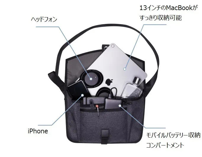 メッセンジャーバッグ「Alpha」には、日常使いに便利な工夫がたくさん。