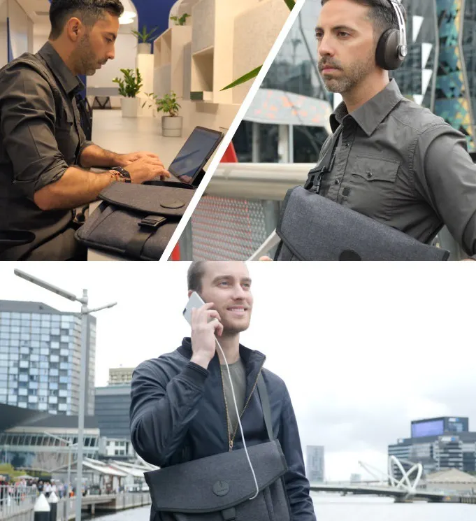 最近は、外出時にラップトップやタブレットを持ち運ぶことが一般的になりつつあります。そうしたニーズを反映して誕生したのが、ハイテクギアを安心して持ち運べる次世代メッセンジャーバッグ「Alpha(アルファ)」です。高耐久性の防水ファブリックやFidlock社のマグネットバックル、YKKの防水ファスナーなどプレミアム素材を採用し、防犯を意識した工夫を随所に施すことで、バッグの中の貴重品やハイテクギアを守ります。さらに、460gの超軽量な本体は、人間工学を応用して身体にかかる負担を軽減するようにデザインされているので、長時間装着しても疲れません。メッセンジャーバッグ「Alpha」は、場所に縛られず、どこでも仕事や遊びができるライフスタイルを実現します。