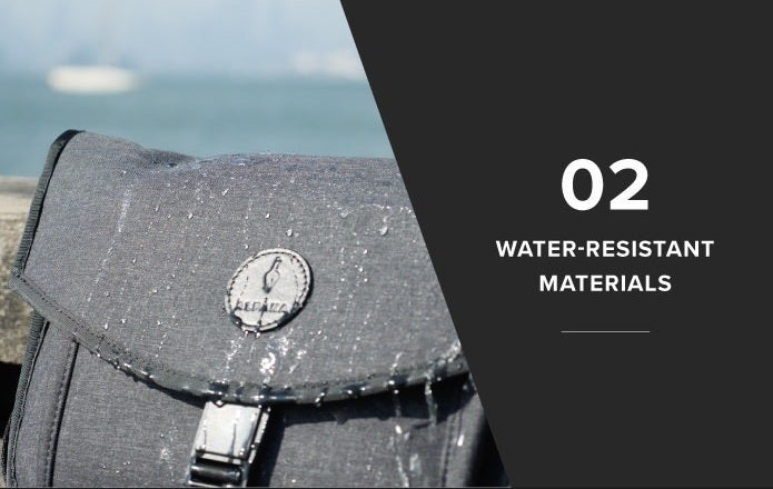 メッセンジャーバッグ「Alpha」は雨に降られても安心な防水素材を採用しています。