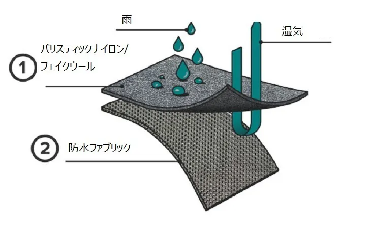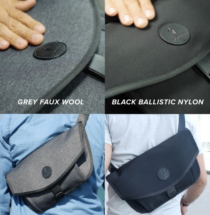 メッセンジャーバッグ「Alpha」のファブリックは、バリスティックナイロンかフェイクウールとリップストップナイロンの二層構造でしっかり防水します。