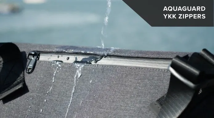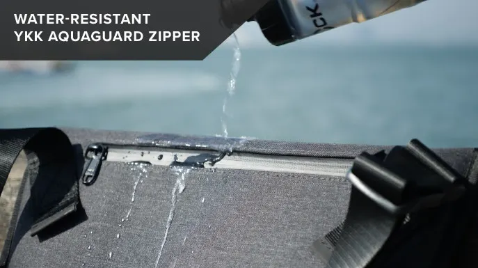 YKKの防水ファスナーを採用。バッグの中に水が入りません。