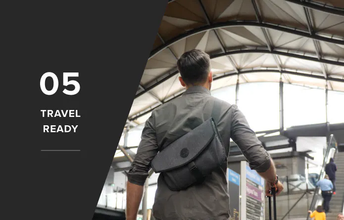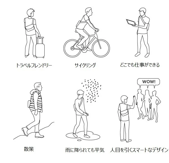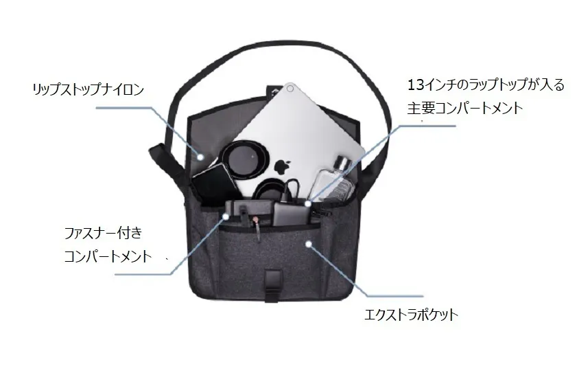メッセンジャーバッグ「Alpha」には、日常使いはもちろん、旅行にも便利な工夫が随所に施されています。
