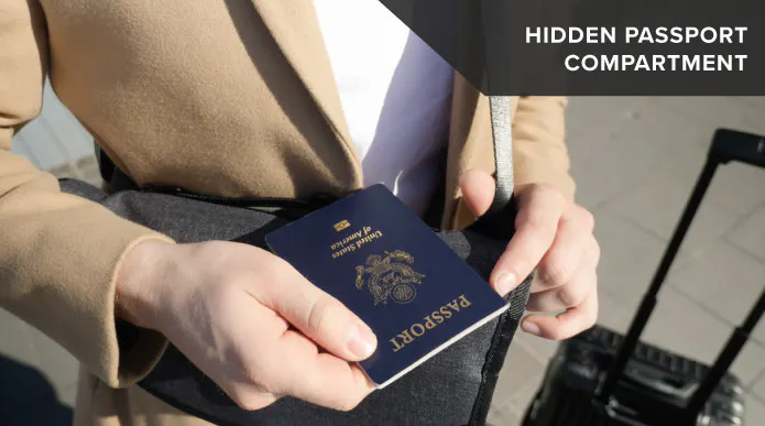 大切なパスポートは盗難にあいにくい背面のファスナー付きポケットに収納。