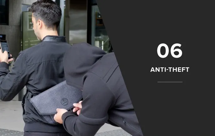メッセンジャーバッグ「Alpha」は防犯対策も万全です。