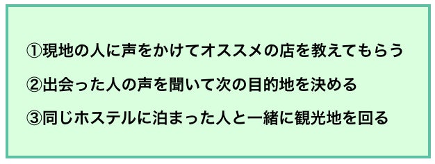 もちろんそれも悪くはないのですが、せっかくなら現地の人しか知らない情報に触れて、現地の雰囲気を最大限に感じたい。