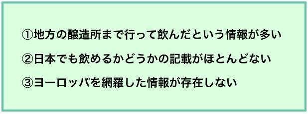 そう思い、急いでホテルに戻ってヨーロッパに眠るクラフトビールに関する情報を検索し続けたのですが、大きな問題点が3つ出てきました。