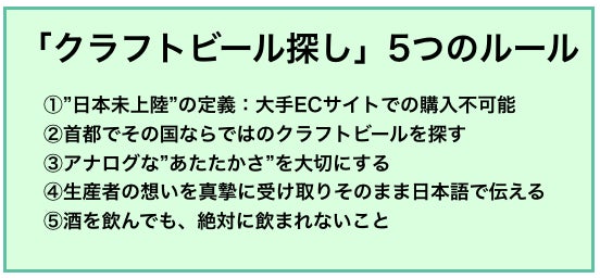 なので、今回訪れる国の”首都”において、日本未上陸のクラフトビールを可能な限り見つけ出します。