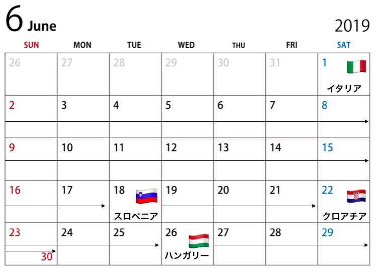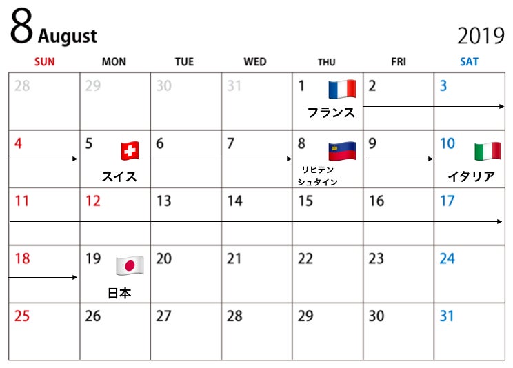 多少前後すると思いますが、途中の予備日と最後のイタリアの期間に余白を持たせているので、抜け漏れなどあればそこで調整をします。