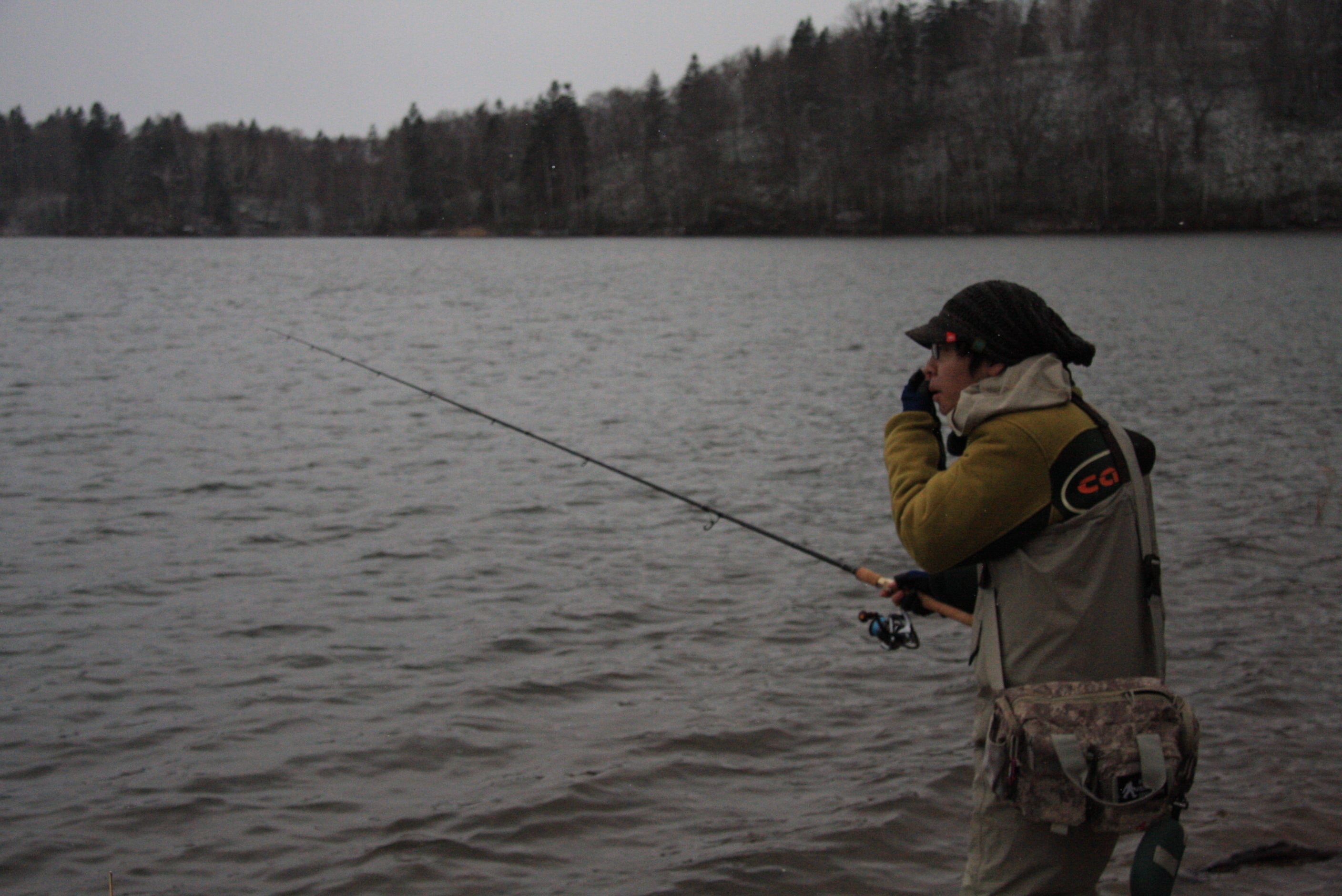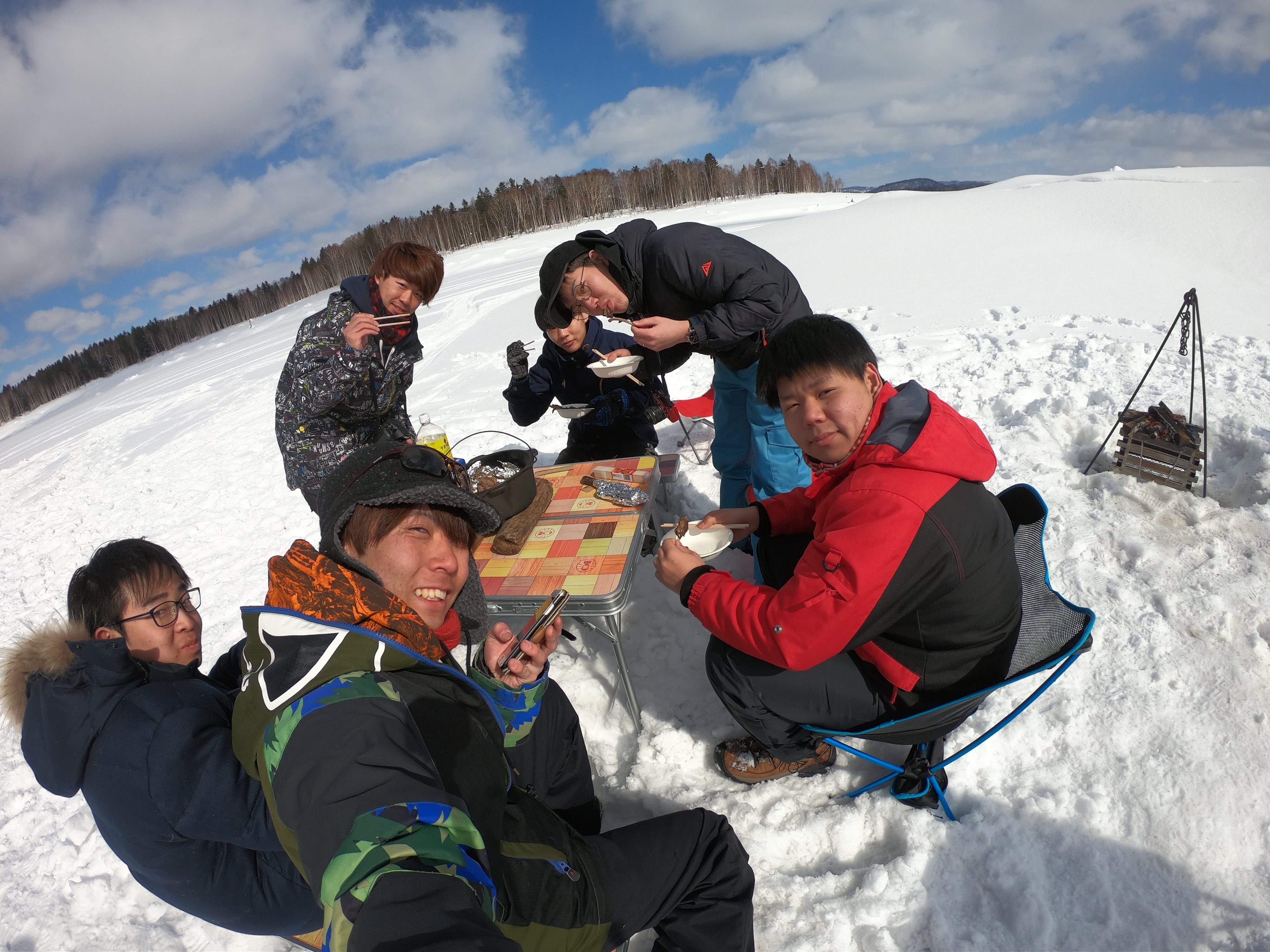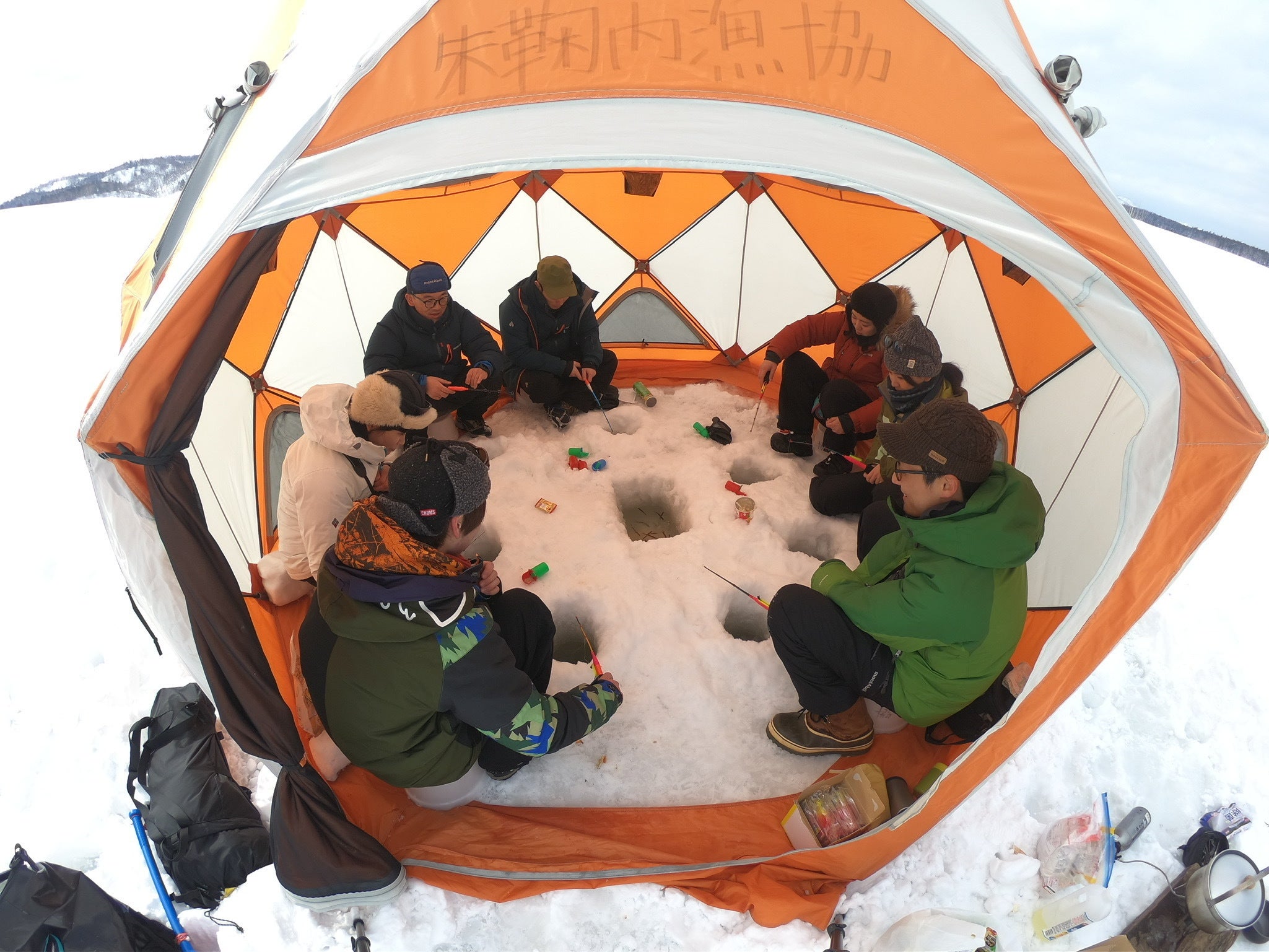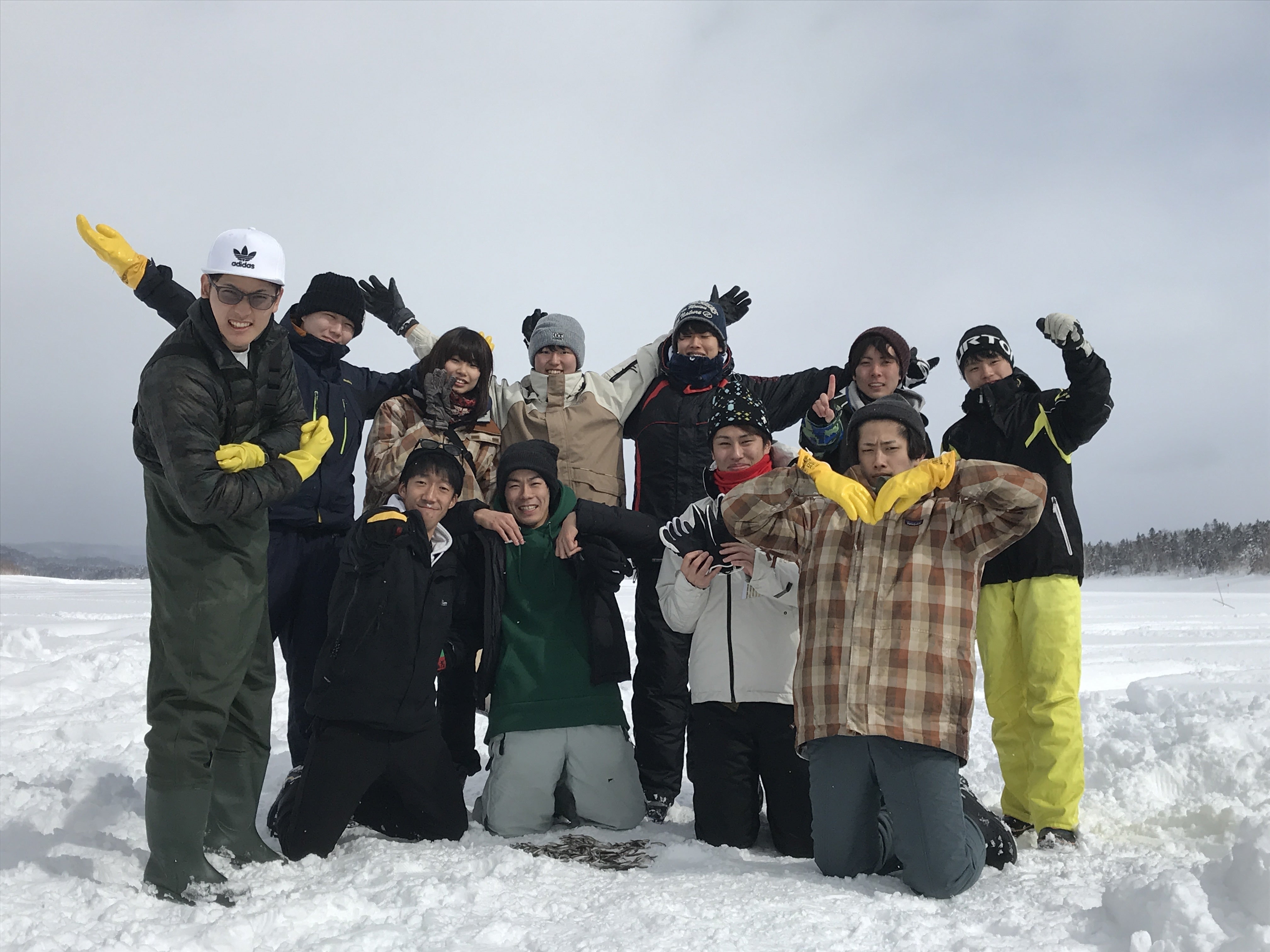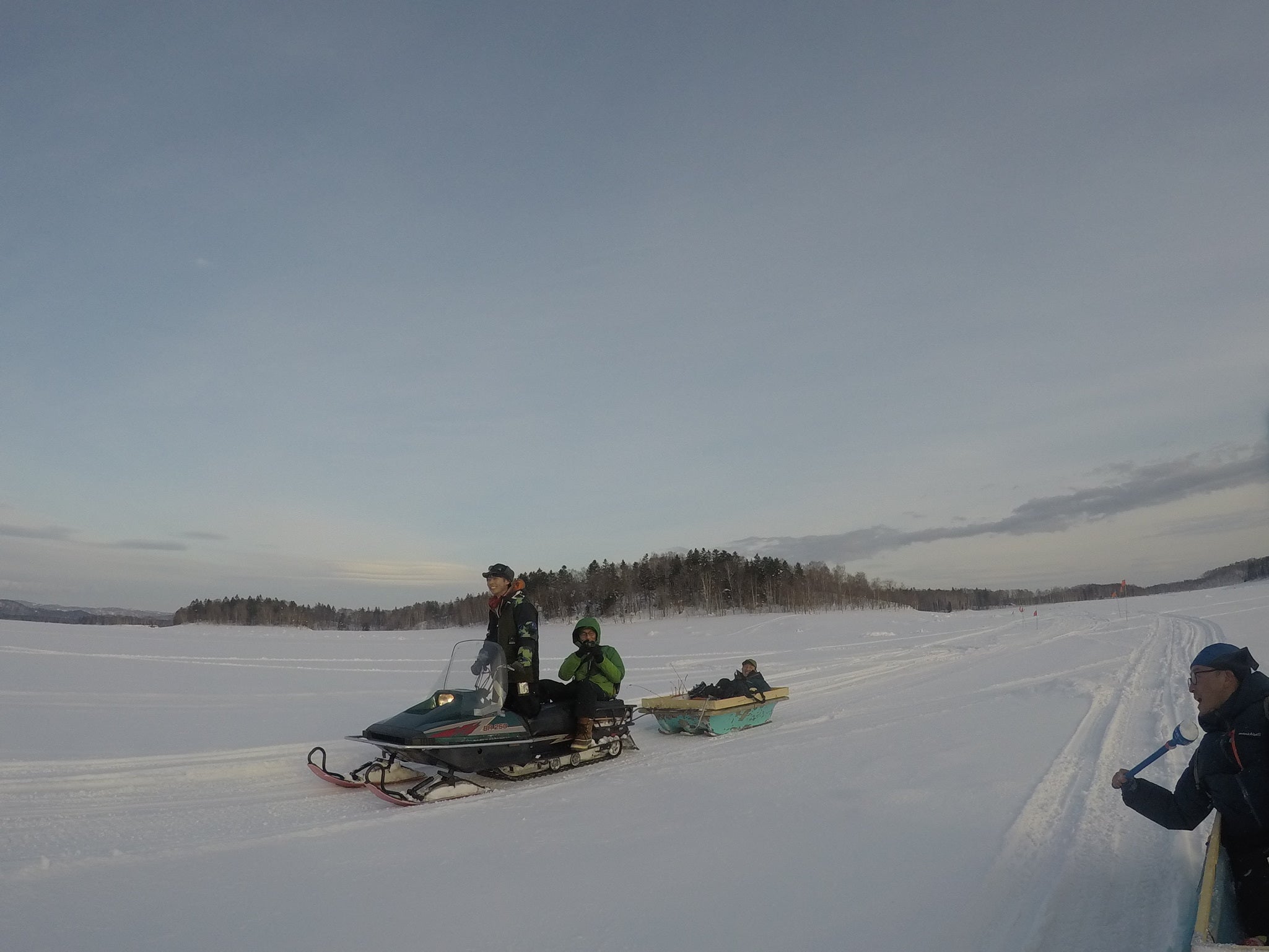 冬はアイスフィッシングをメインにワカサギを釣ったりイトウを狙ったり、スノーモービルで湖上を走ってみたり、湖上でピザを焼いてみたり、、といろんな体験をみんなと一緒に経験しました。