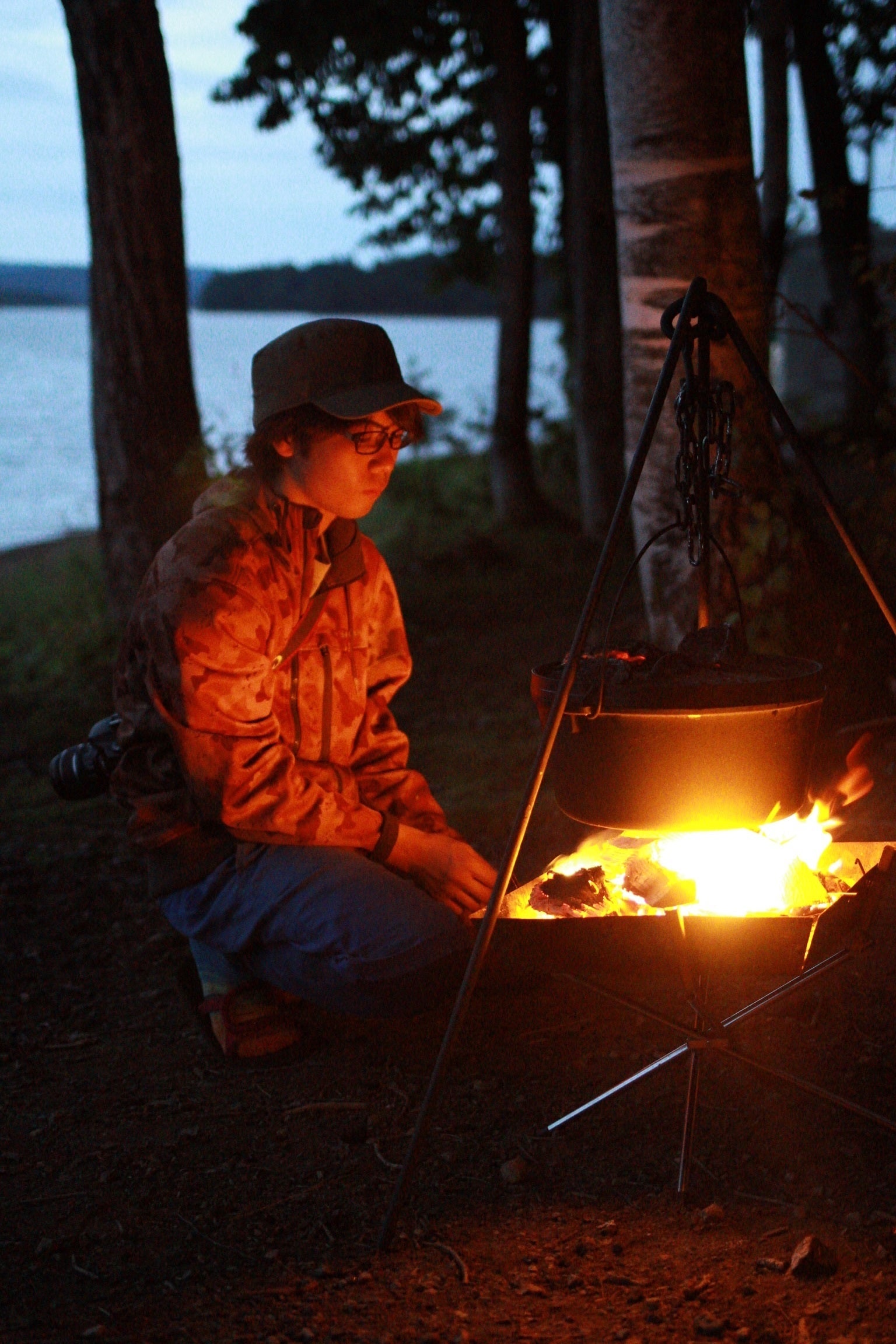 2019/10/01 00:329月13〜14日に2回目のハンモックキャンプを行いました。今回も札幌から大学生が遊びに来てくれました!三連休ということもあり朱鞠内湖キャンプ場は100組を超えるお客さんで賑わっていました。まずは遊ぶ!今回は宏武先生がエサ釣りを伝授。釣れました!カヤックにも乗ります。力強い漕ぎですね(笑)どこまで行くの〜遊んだ後は晩御飯の準備です。今回はナンにカレー、ローストチキンを作ります。もちろん火起こしはライター、マッチを使いません。特に理由はないのですが、サバイバル感を出したくてこのようなルールを作りました。(靴を脱いでより一層サバイバル感が出ていますね笑)完成間近の様子。ダッチオーブンもセットします。はい、完成!志は高く、姿勢は低く、常に皆平等で、、カンパーーイ!ご飯を食べたら、焚き火を楽しみながらゆっくりしました。星も綺麗でした。眠くなったら寝る。そんな感じでした。もちろんハンモックで。ちょっと寒かったですね(笑)朝明が神秘的でした。そして恒例のモーニングコーヒー。本当に美味しいです。ハンモックで飲んだりカヤックに乗りながら飲んだり。。目が覚めたら朝ごはんを作ります。釜に火をつけ、生地を伸ばします。そして焼きます。オリジナルピザが色々出来ました〜すごく美味しいピザでした。食べ終わったら、釣りをしたりハンモックで昼寝をしたりゆっくり過ごしました。勇大くんの写真の腕前がすごい!(画質のいい写真は全て勇大が撮ったものです。)ゆっくりしたらみんなで片付けをしました。そして最後に記念撮影。すごく楽しいキャンプでした。シュマリを肌で心で感じられたのではないでしょうか。参加してくれた皆さん本当にありがとうございました!!ーsyumari.jrー今回のベストオブシュマリ もっと見るお礼と第一回ハンモックキャンプの事後報告