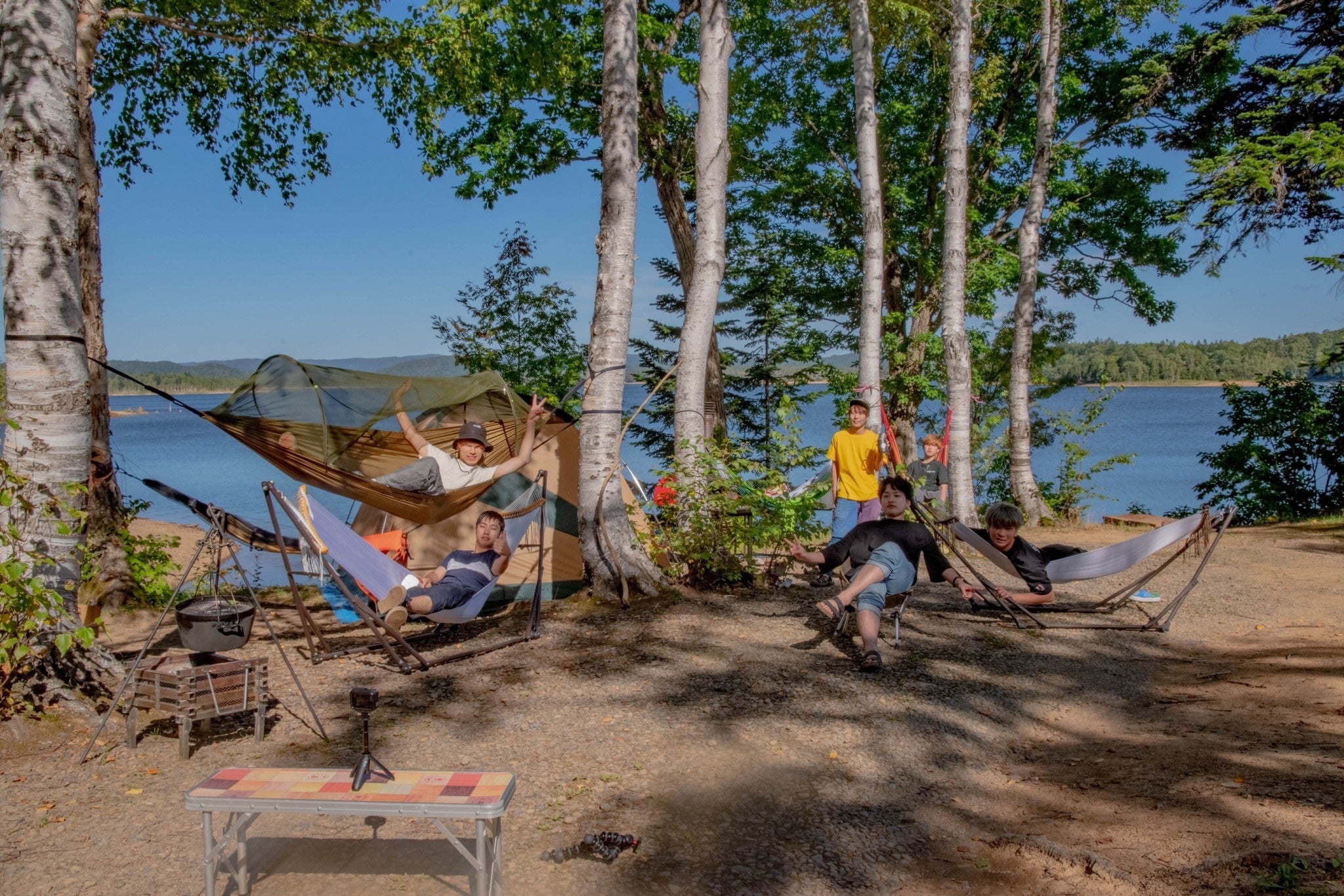 朱鞠内湖キャンプ場の地形を活かして、木と木の間にハンモックを張り、ダッチオーブンで料理を作ったり、釣りをしたり、カヤックに乗ってみたり、夜は星をを眺めながらハンモックで寝る。簡単に紹介するとこんな感じです。朱鞠内湖だからできるアウトドアをみんなで楽しめたらなと思います。