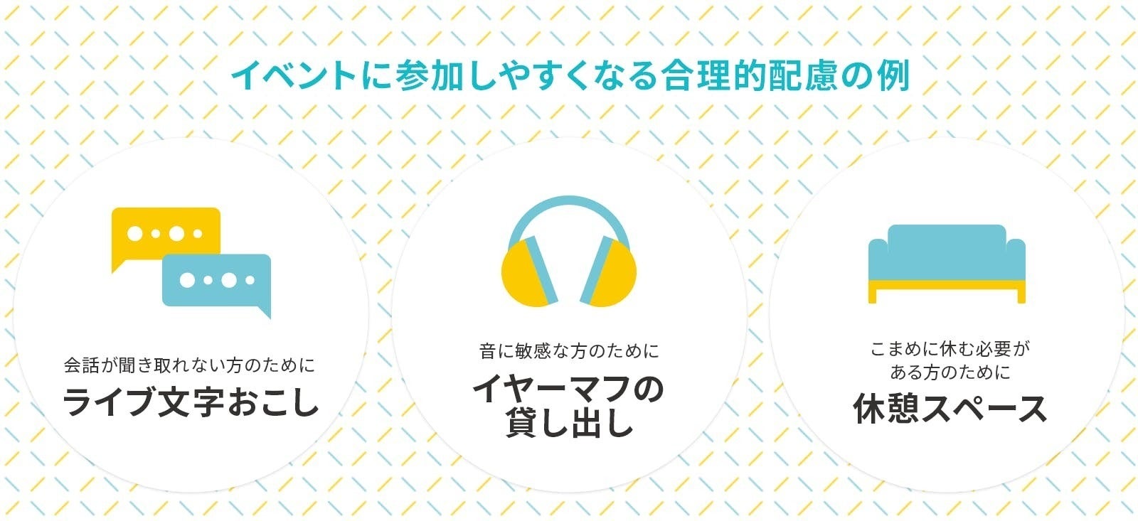 文字起こしやイヤーマフの貸し出し、休憩スペースなどが例として挙げられています。