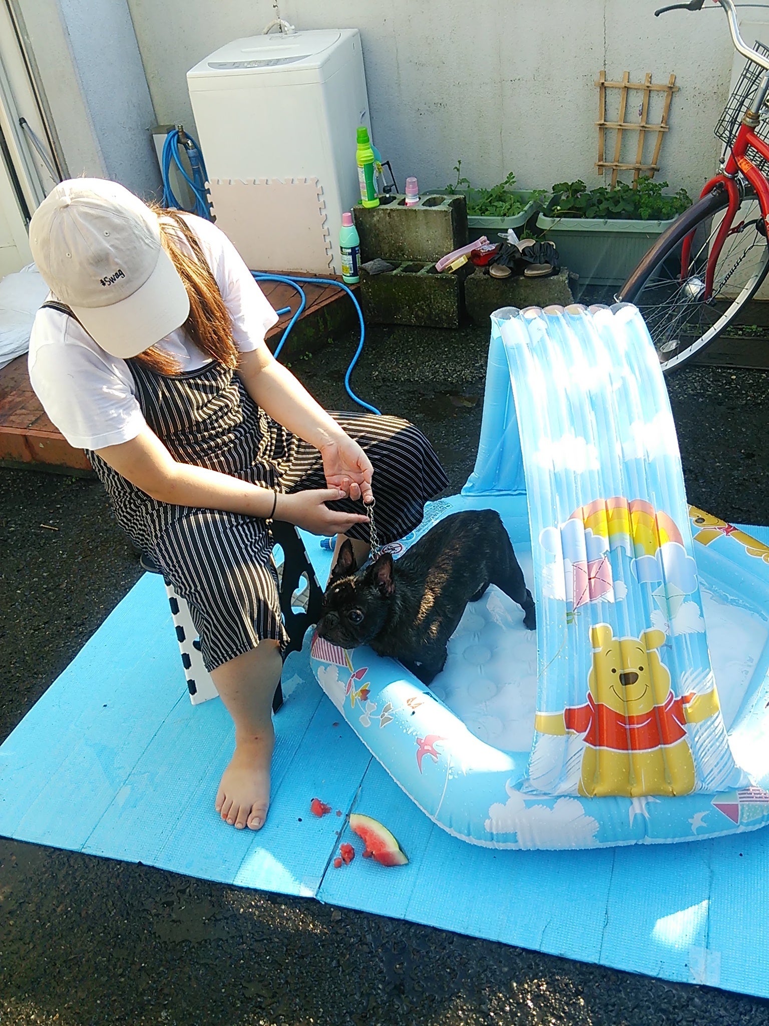 2019/08/08 22:32画像を複数載せる載せ方がわからない、、台風が過ぎて暑さが増し、犬たちもまいってる様子!そこで、フレンチくんたちをプールに入れてあげました!目の見えない子はとても怖がってパニックになったので、チョロチョロのシャワー。しばらくは、プールの日々が続きそうです(^^) もっと見る保護したプードル君のその後