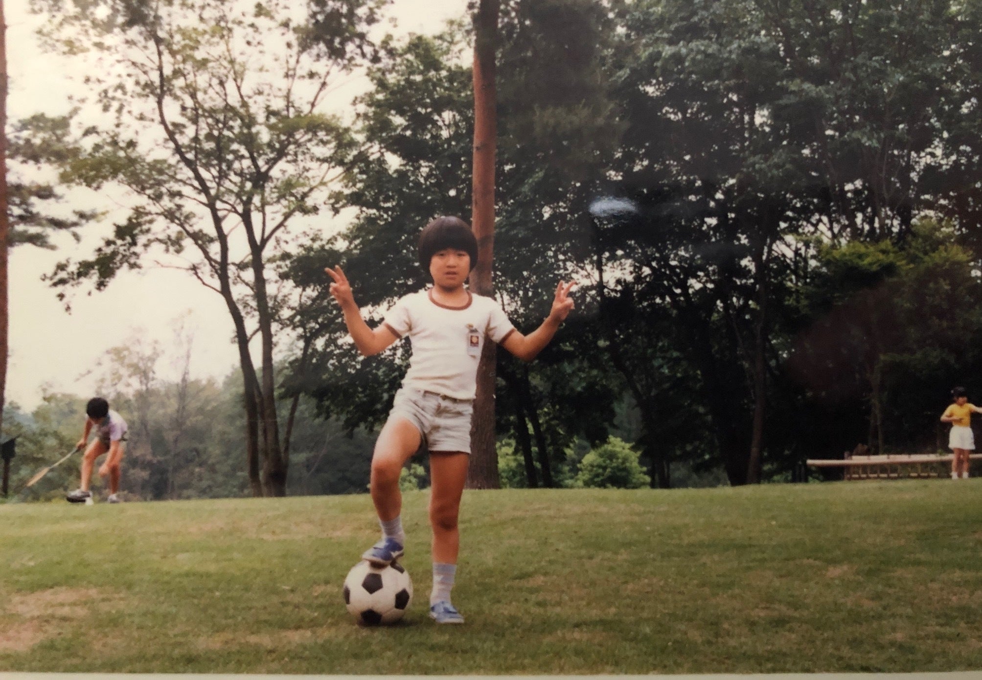 やりながら過ごしていたのですが、ある日、体操クラブの先生が社会人サッカーをやっていたこともあり、サッカーボールを持ってきて、園庭にサッカーボールを転がしたところから、25歳まで、ひたすらサッカーボールを追いかける人生がスタートしました。これが“ひたすらサッカー人生”のスタートです。