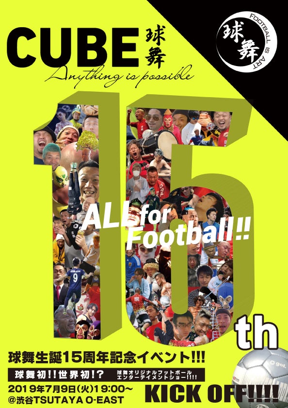すべてはサッカーのために!サッカーでエンターテイメント界へ殴り込み!…を合言葉に、活動を続けて今年で結成15周年となりました。この機会に球舞15周年のお祝いも兼ねまして、ただのパーティーをやるだけでは勿体ない!せっかくなのでチーム初、日本初、世界初になるであろう、サッカーと音楽のエンターテイメントショーを“球舞ワンマンショー”という形で開催する運びとなりました!