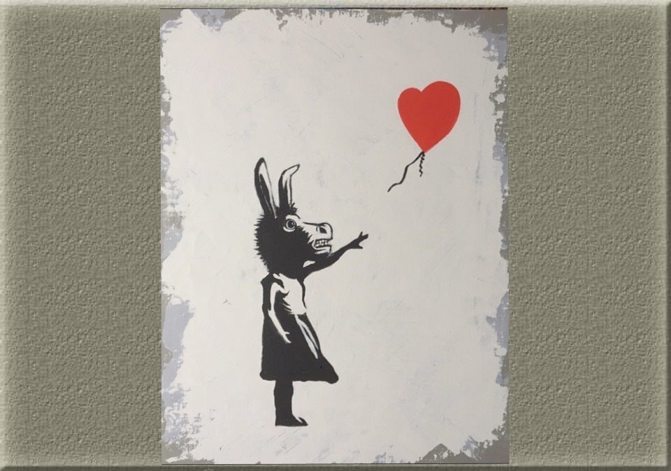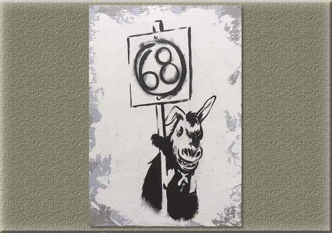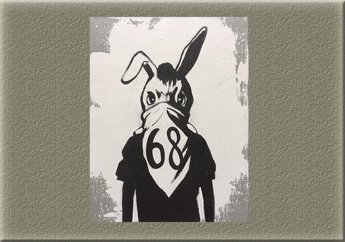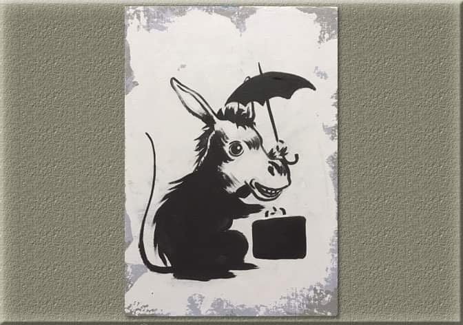 NEW!ロバンクシー(描き下ろし油絵) 「芸術は落書きだ‼︎」サイズ:F0 (180×140mm) 価格:68,000円 限定数:1