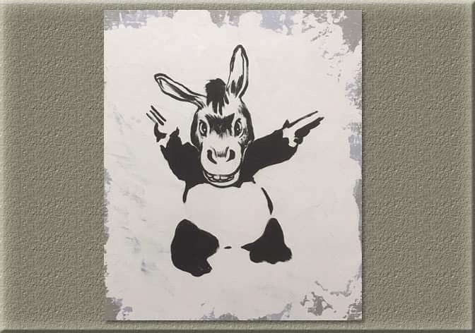 NEW!ロバンクシー(描き下ろし油絵) 「隠しきれないロバの顔」サイズ:F0 (180×140mm) 価格:68,000円 限定数:1