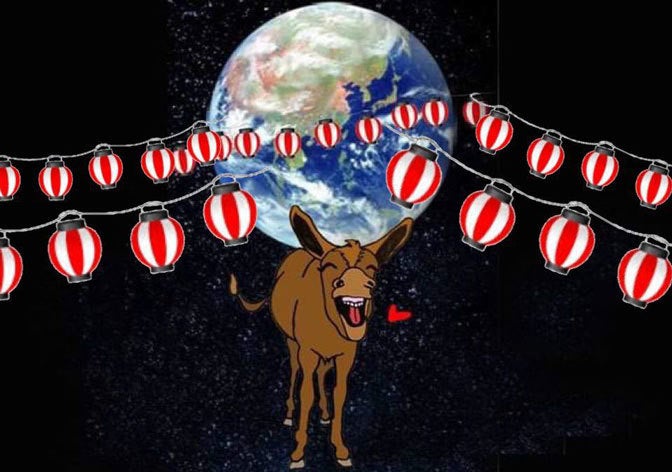 「ロバは地球を救う⁈」名入り提灯をイベント会場に陳列させていただきます。価格:50,000円 限定数量なし※ロバフェスのイベント参加権はついておりません。