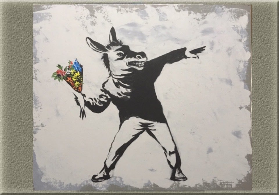 ロバンクシー(描き下ろし油絵) 「敵には、花束を贈れ‼︎」サイズ:10号 価格:50万円 限定数:1