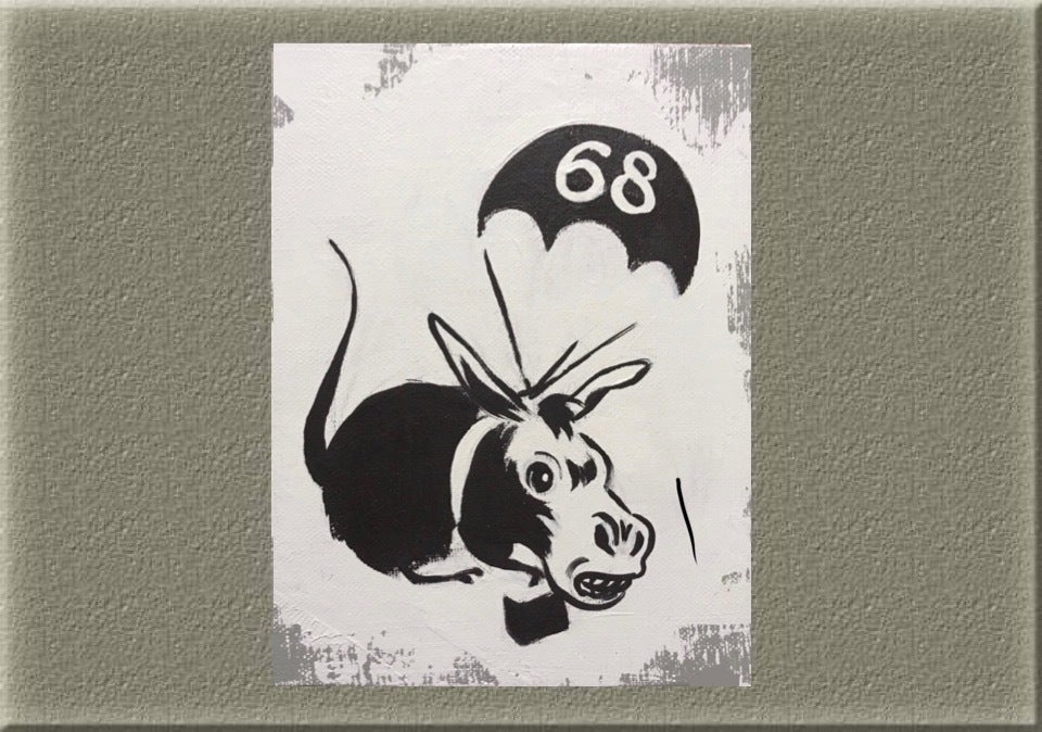 NEW!ロバンクシー(描き下ろし油絵) 「冥土の旅は68里塚」サイズ:SMサムホール(227×158mm) 価格:13万円 限定数:1