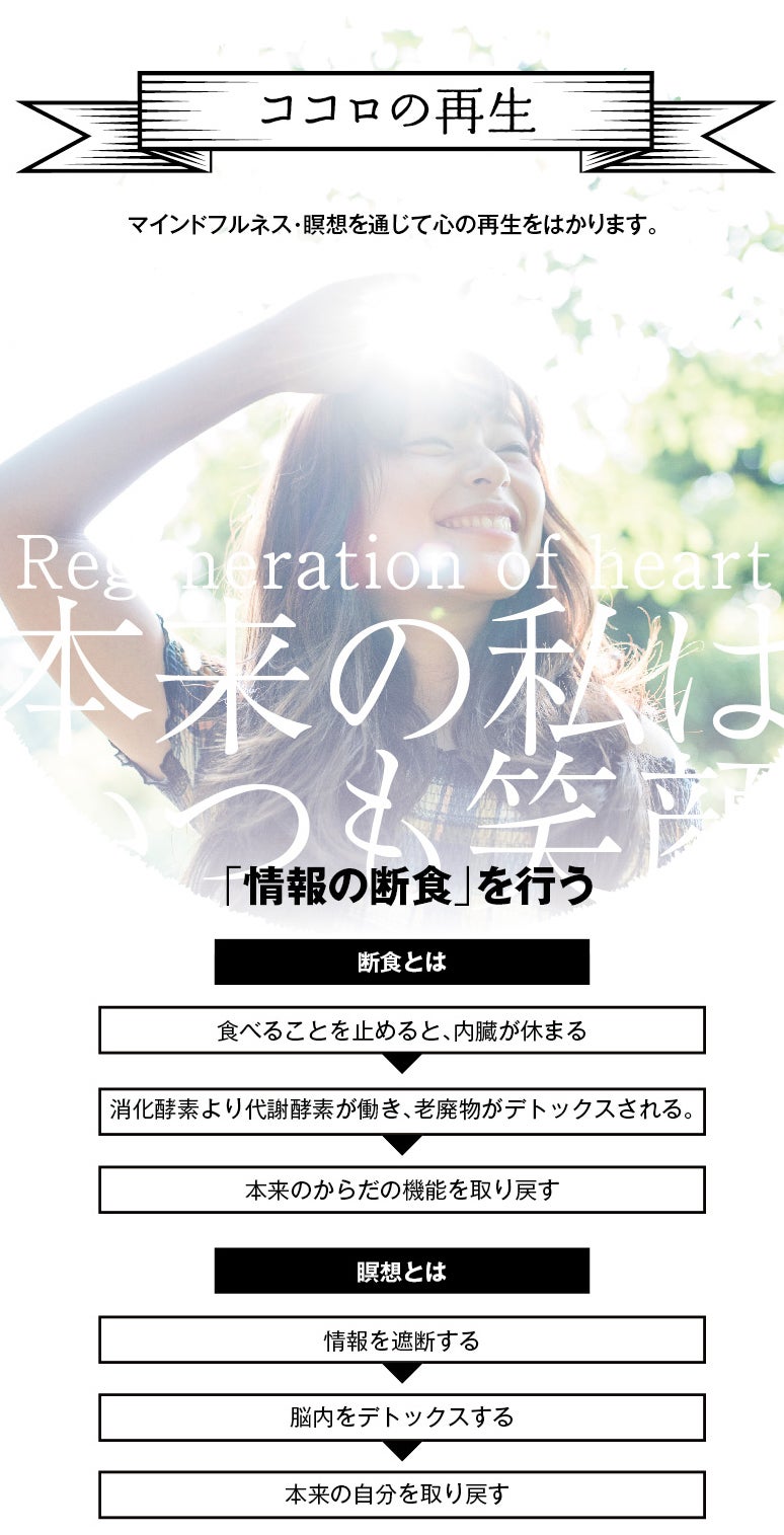 今まで数々の自然療法を学び、それらに関わる資格を習得。ヴィパッサナー瞑想10日間合宿や世界三大巡礼サンティアゴの旅も経験。ヨガ、瞑想は日課で、月に一度の3日断食や半年に一度の10日断食なども習慣。塩浴、アイソメトリックなどの健康法も取り入れ、病気知らず。