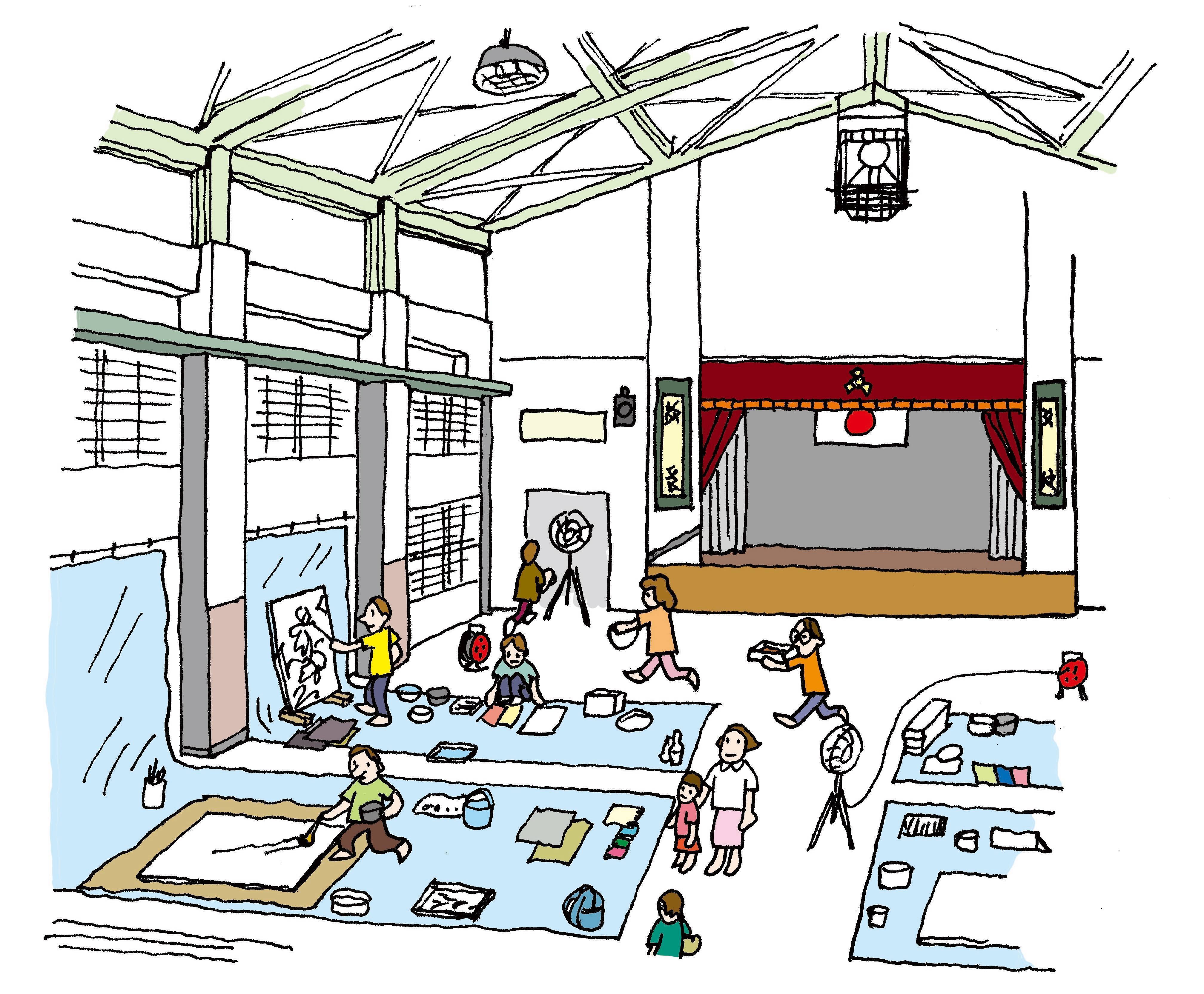開催場所の簀子小学校跡地や、画材、宿泊場所、