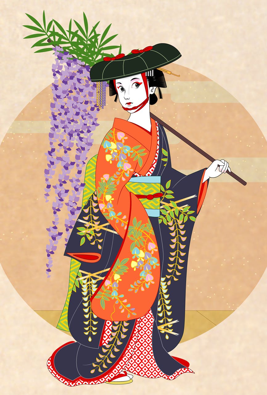 洋装文化が日本に入り和と洋が絶妙に混じり合った「大正時代」1軒の個性的なファッションブティックのショーウィンドウに飾られた人と同じサイズの大きな「藤娘」のお人形。誰が見ても彼女は確かに藤娘ですが、店主の趣味かちょっぴり個性的な藤娘の衣装を身にまとっていました。