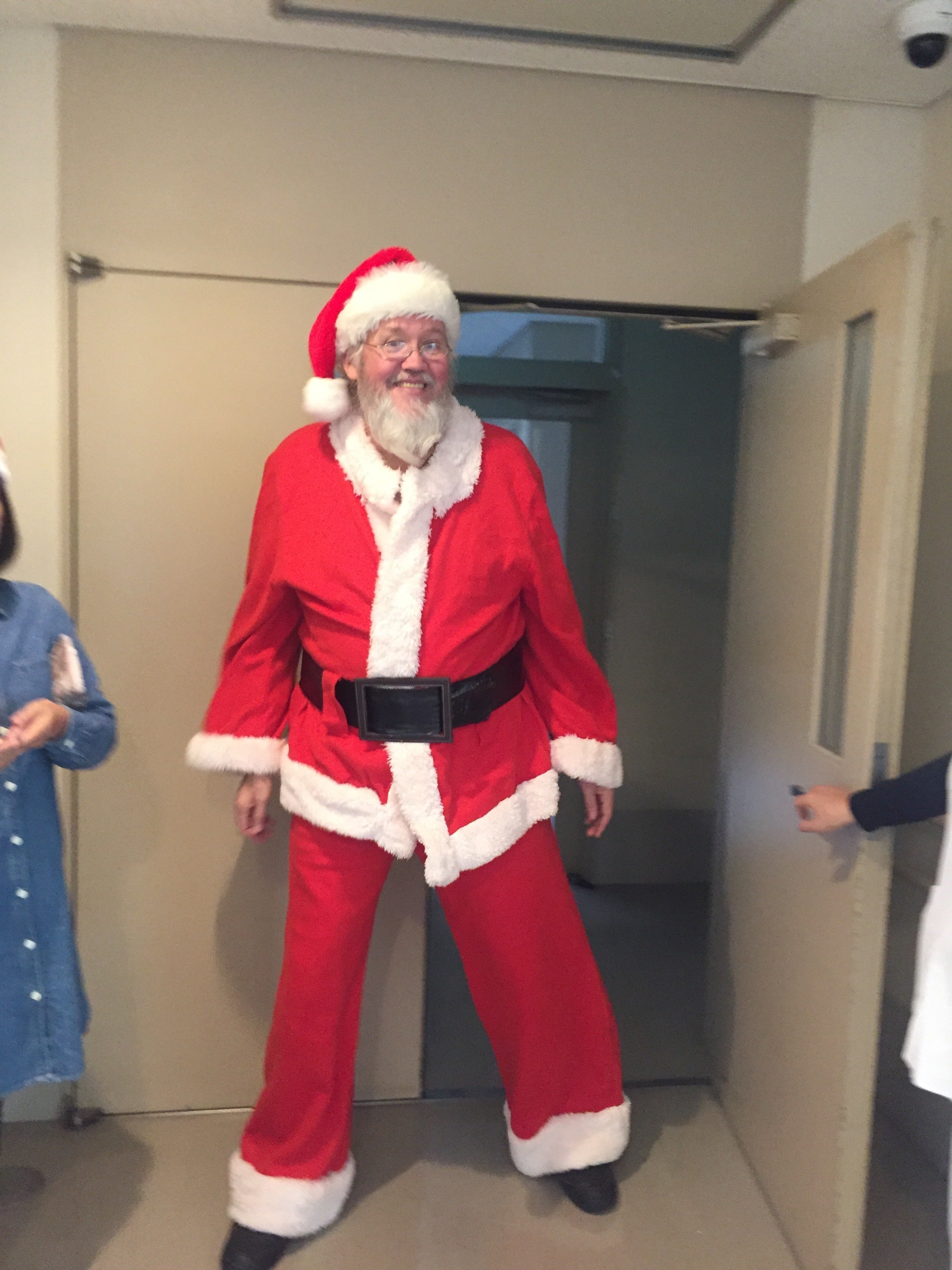 写真のように、サンタクロース役のティムは、見ためも性格もサンタクロースそのもの。