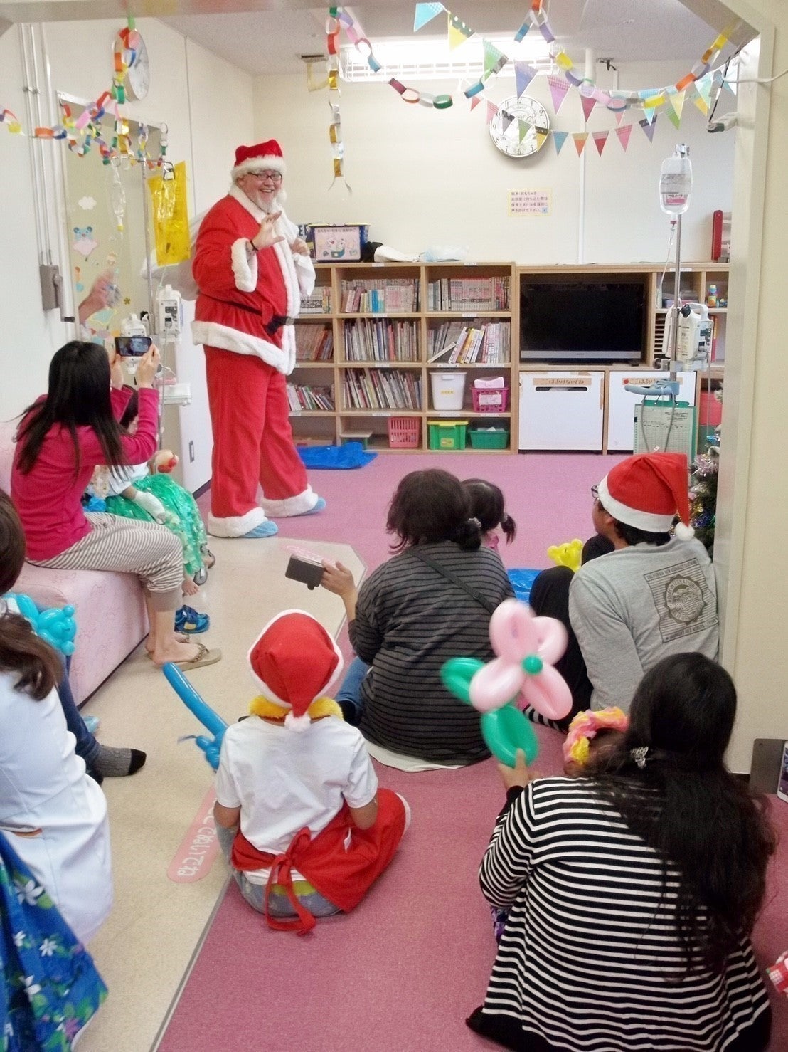 毎年12月になると、小児病棟主催のクリスマス会に招待していただき「サンタクロースとその仲間たち」としてボランティア訪問しています。