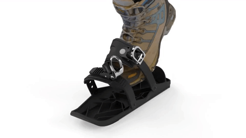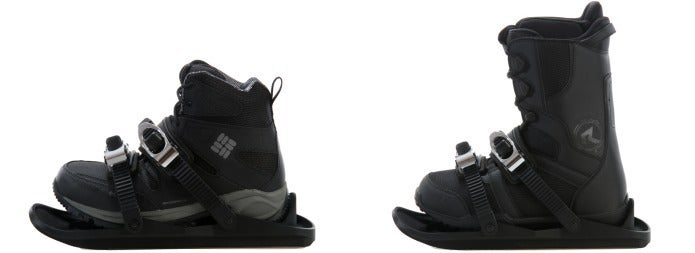 スノーフィートはビンディング形式なので、簡単にウィンターシューズやスノーボードブーツに取り付けができます。