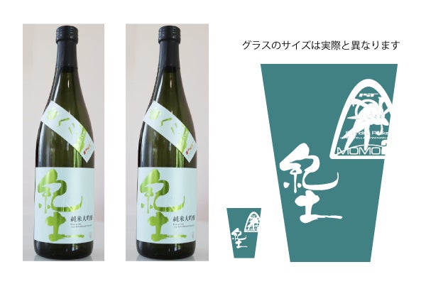 平和酒造 様 提供のMOMO応援酒 「紀土純米大吟醸 宙へ!!」2本と今回だけのペイターズドリーム MOMO4号機打上げ記念限定日本酒用スペシャルグラスを2個セットでお届けします。MOMO応援酒 「紀土純米大吟醸 宙へ!!」は全国の酒屋さんで販売中です。※グラスのデザイン、大きさは現在検討中で、この図から変更される場合がございます。