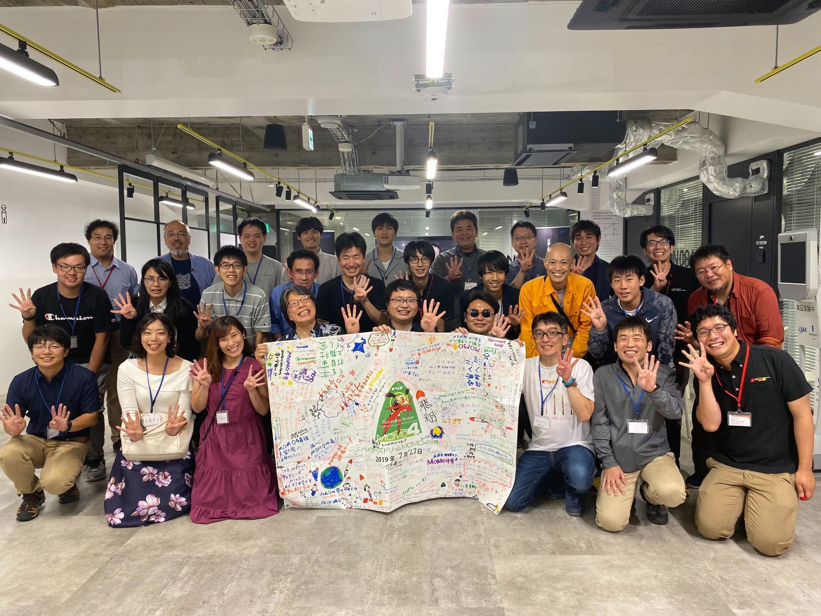 2019/07/16 17:16活動報告2 2019/07/16「みんなの力で宇宙から夢の折り紙飛行機を飛ばそう!」にご支援いただいたみなさまへ今回も一般公開でお伝えしています。この度は「ペイターズドリーム MOMO4号機」打上げ支援クラウドファンディング、「みんなの力で宇宙から夢の折り紙飛行機を飛ばそう!」にご支援いただき、ありがとうございます。前回の「宇宙品質にシフト MOMO3号機」は皆さんの厚いご支援を賜り、民間単独の開発では初めてとなる、宇宙空間到達を達成いたしました。それを受けての今回は、打上げまでの期間、そしてクラウドファンディングの募集期間も短い中で「宇宙で夢を実現するミッションをお手伝いしたい」というテーマに対して、多くのみなさまからご支援を頂き、嬉しい驚きと感謝の気持ちでいっぱいです。「ペイターズドリームMOMO4号機」は打上げのための準備を終え、7月13日、14日の日程で打ち上げる予定でしたが、13日、14日共に天候が思わしくなく、打上げは延期になりました。現時点での次の打上げ予定日は 20日(土)(21日は打上げ予定なし)になります。そして機体にはすでにペイロードが積み込まれ、宇宙ヘの旅立ちを待っています。今回搭載されるペイロード達。557名の支援者の皆様のお名前を載せた折り紙飛行機の型紙です。IST本社工場で搭載する折り紙飛行機を折るキャステム戸田社長。7/11完成した折り紙飛行機編隊。扇子のかたちをイメージした、その名も「宇宙扇」です。機体広告リターンのコースをご支援いただいた、埼玉県川口市の「もがき歯科」様のロゴ入りの機体です。そして、機体に搭載しました。透明なチューブの中に3機が折り畳まれて収納されています。平和酒造株式会社様の「MOMO応援酒 紀土 宙へ!!」三升分を蒸留してアルコール度数を上げています。7/12の打上げ前日に平和酒造 山本社長の手で燃料用エタノールに添加しました。このまま打上げ前に機体に充填されます。OWNDAYS (オンデーズ)株式会社 様のAIR Ultemヘリウムタンク脇のフレームに取り付けられました。今回は宇宙に株式会社GROSEBAL様の「とろけるチーズハンバーガー」をデリバリーします。前回と同じ場所に搭載されました。株式会社サザコーヒー様の世界最高級のコーヒー豆である「パナマゲイシャ」200gです。100g入2袋が機体の両側に搭載されました。MOMO2号機、「宇宙品質にシフト MOMO3号機」と連続しての機体スポンサーであるレオス・キャピタルワークス株式会社様のひふみ投信のキャラクター「ひふみろ」です。ぬいぐるみとして搭乗するのは初めてです。「ひふみろ」はヘリウムタンクの中心にすっぽりと搭乗しています。今回の機体スポンサー様は前回に続いて株式会社SHIFT社長であり実業家の丹下大様で、今回もフェアリングに「宇宙にシフト!」というキャッチコピーを入れさせていただきました。機体スポンサーもう一社はOWNDAYS 株式会社 様でロゴをヘリウムタンクエタノールとタンク部分に描かせていただきました。そして機体命名は株式会社paters(ペイターズ)様により、MOMO4号機に込められた夢の実現を応援するとの意味合いで「ペイターズドリーム MOMO4号機」と命名されました。本ウインドウ(7/13,14)での打上げ延期が決まった7/13、本クラファンの打上げ支援スタッフのリターンのコースをご支援いただいた方々と、HIU(堀江貴文イノベーション大学校)で応募いただいたポランティアのみなさまで、打ち上がらなかった機体の見学を行いました。今回の打上げに際して、射場への企業看板設置が始まりました。看板設置のお問い合わせ、資料は、以下のURLを御覧ください。https://drive.google.com/file/d/1bkhPt47GD-csYd7w-nENoPe4nzTmPAI5/view もっと見る活動報告1 2019/07/06