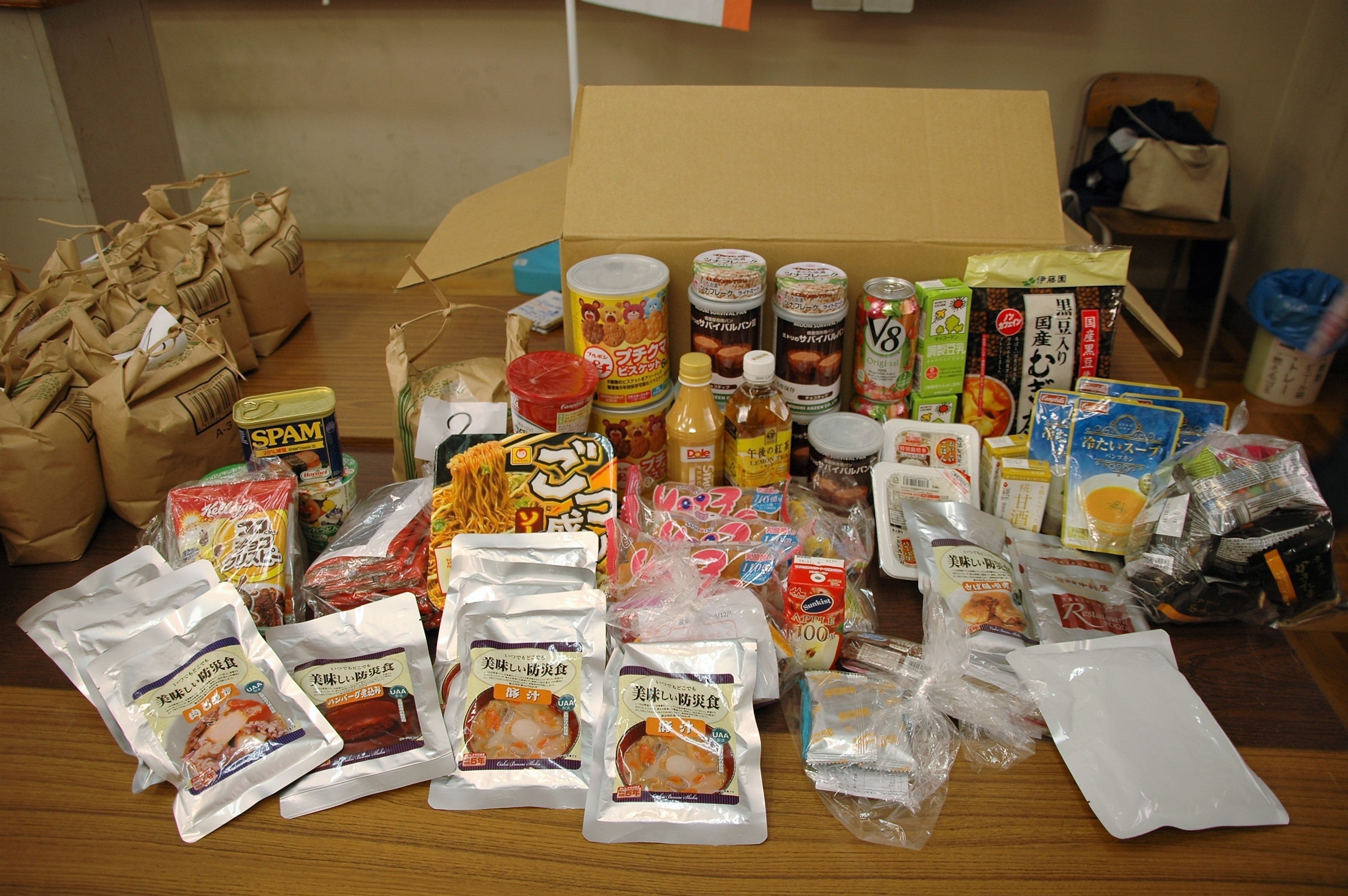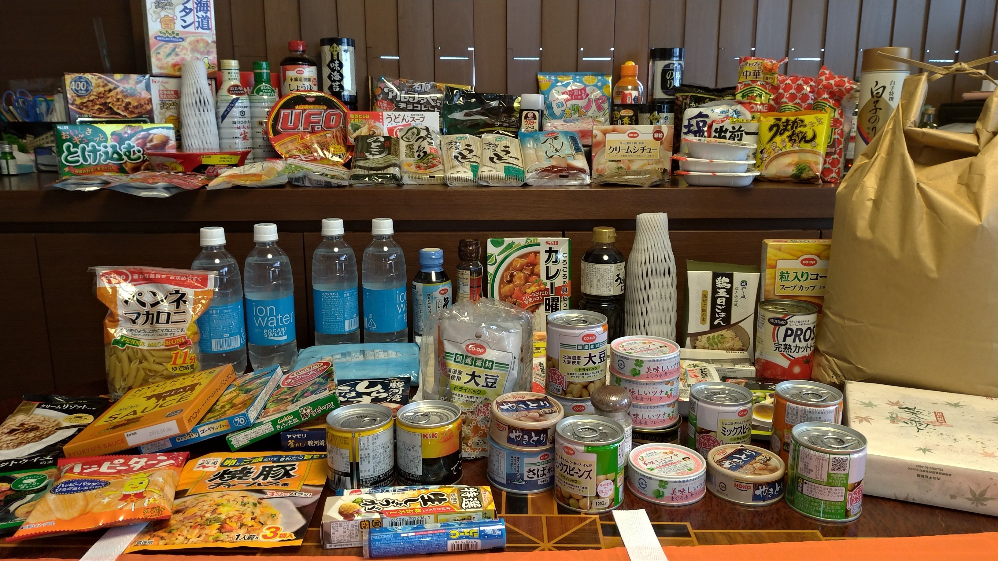 送付した食品。お米、レトルト食品などすぐに役立つ食品が中心