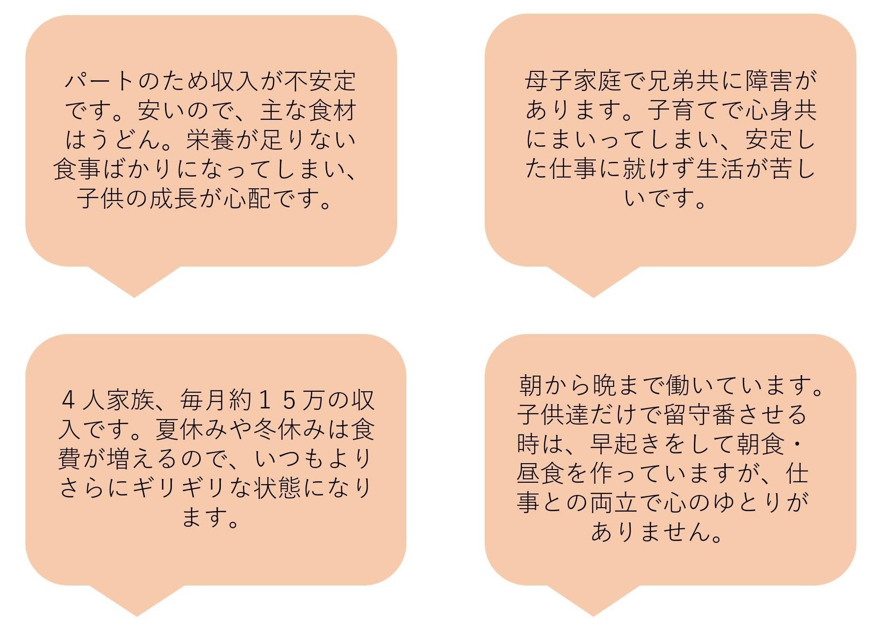 そこで「休み中は給食に頼れない…」という低所得の子育て世帯の食の不安を少しでも軽減し、お腹を減らすこどもたちを少なくしたい!と考え、始めたのが