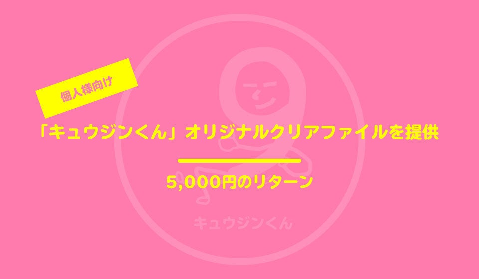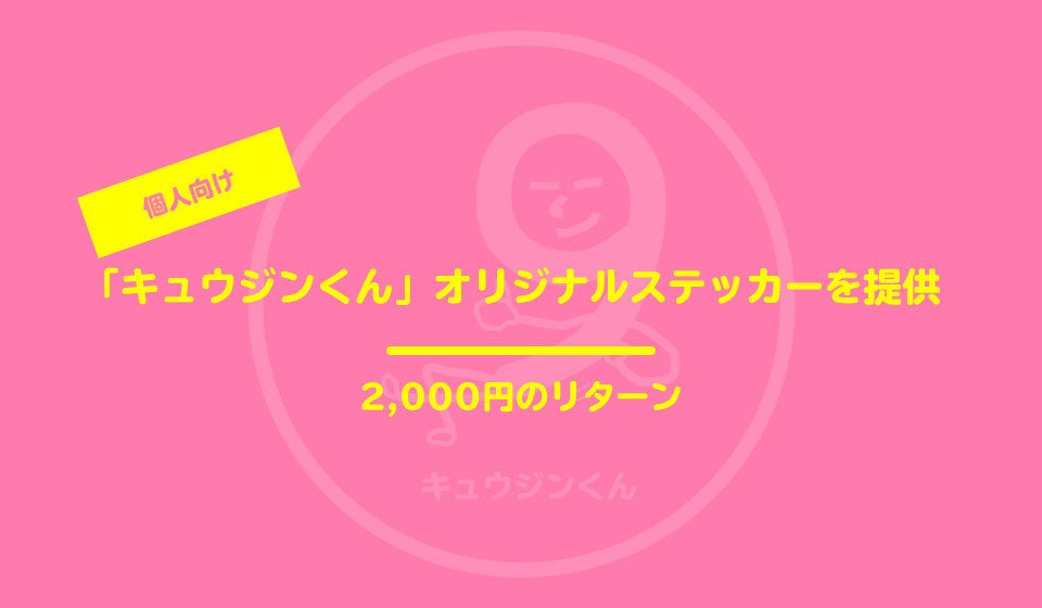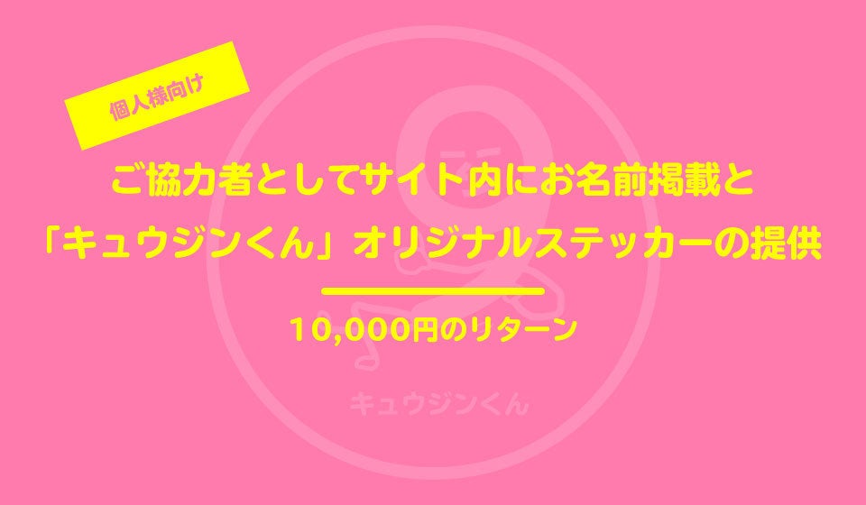 ※個人様向けの「キュウジンくん(仮)」オリジナルノベルティグッズは感謝のメッセージとともにご提供します。