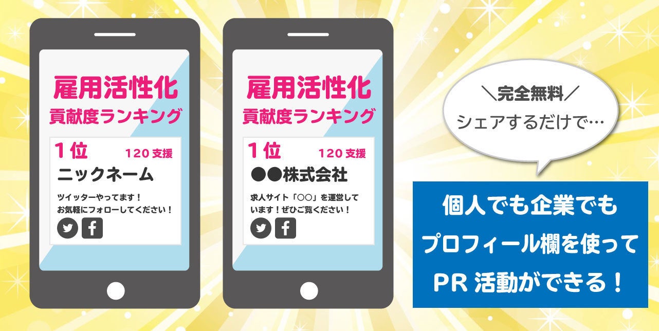 弊社が考えているサイトはもっとシンプルに、もっと安価に、もっと気軽に求人を掲載できて、拡散してくれた支援者の方を「雇用活性化に貢献してくれた人(または企業)」として大きく紹介し、PR活動にも使ってもらいたいと思っています。