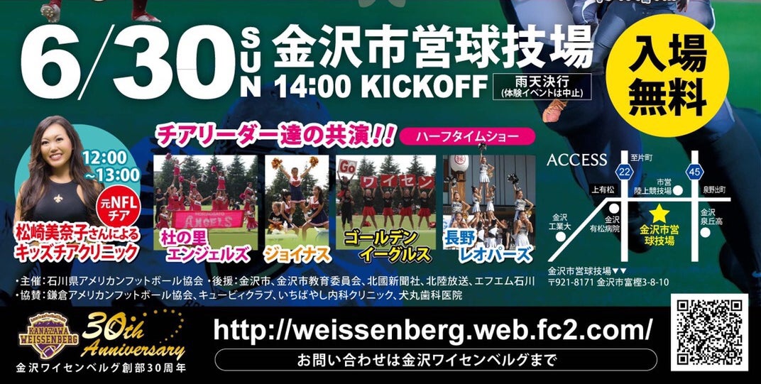 そして金沢で、アメリカンフットボールとチアリーディングを身近なスポーツとしてとらえ、この地域で共に成長していければと思います!