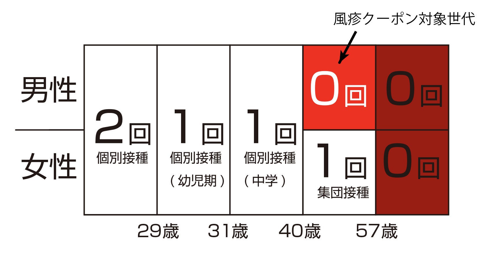 特に40歳〜57歳の男性は"一度も"ワクチンを接種する機会がなかったので、