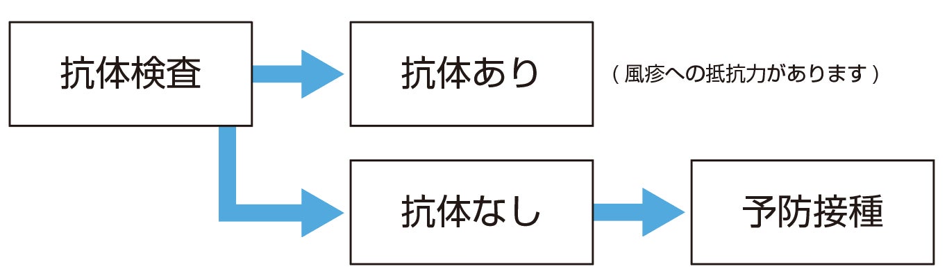 まず抗体検査を行い、抗体が低い場合は、予防接種という流れになります。