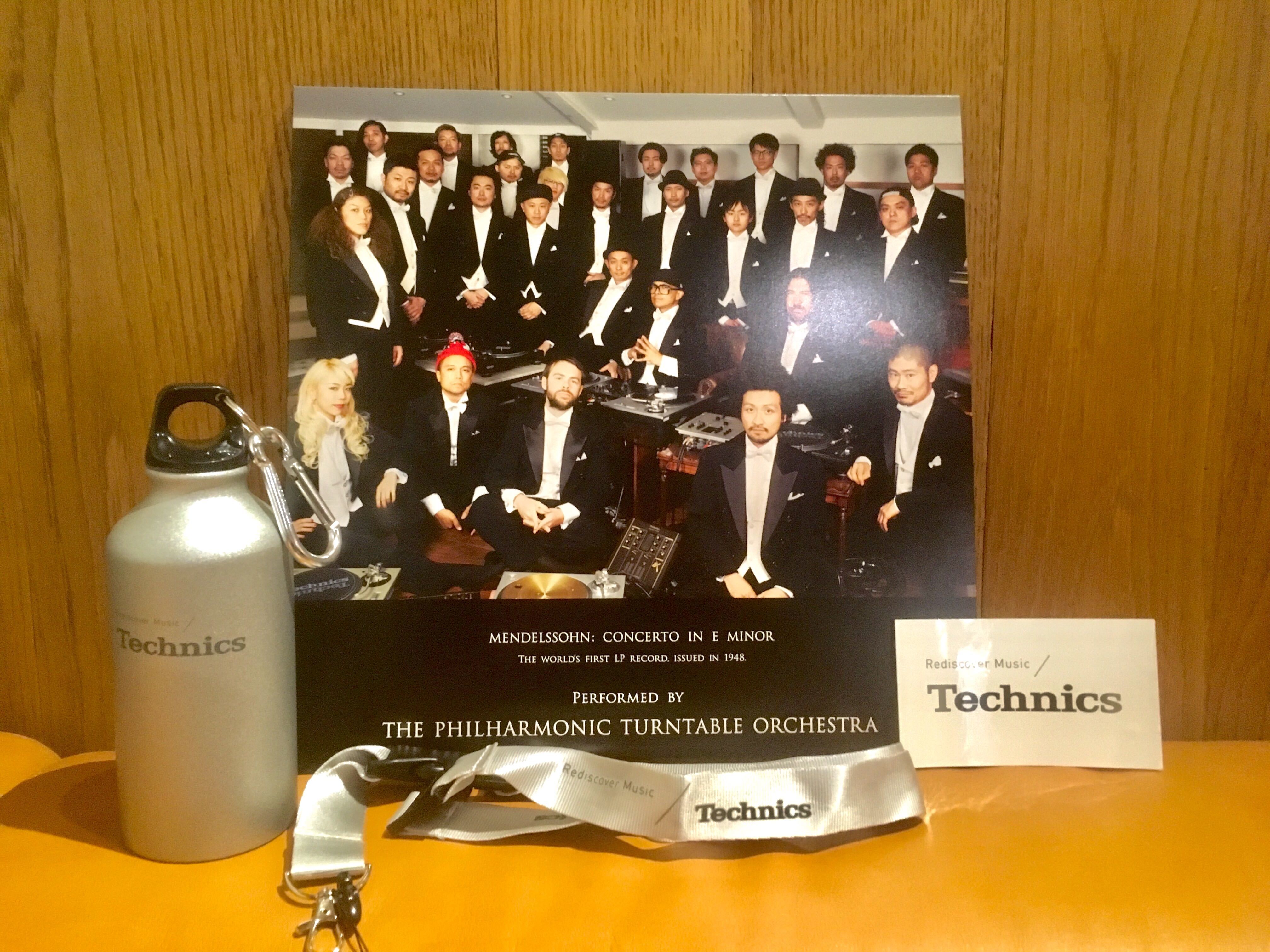 Technics非売品グッズ(ターンテーブルオーケストラレコード/アルミマウンテンボトル/ネックストラップ/ステッカー)
