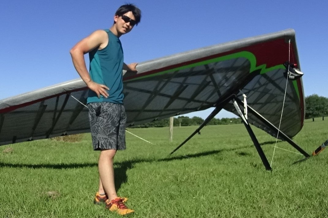 僕は小さい頃から空を飛ぶことが夢で、近畿大学入学後すぐにハンググライダーを始めました。