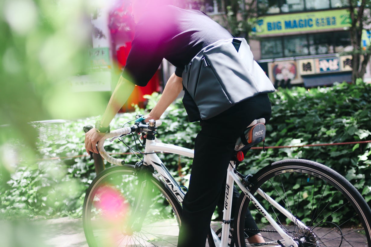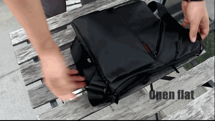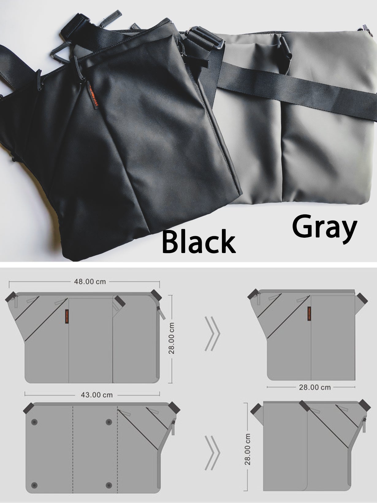 メッセンジャーバッグにすると、サイクリストやバイカーにもちょうどいい、容量の大きな斜め掛けバッグとして機能します。