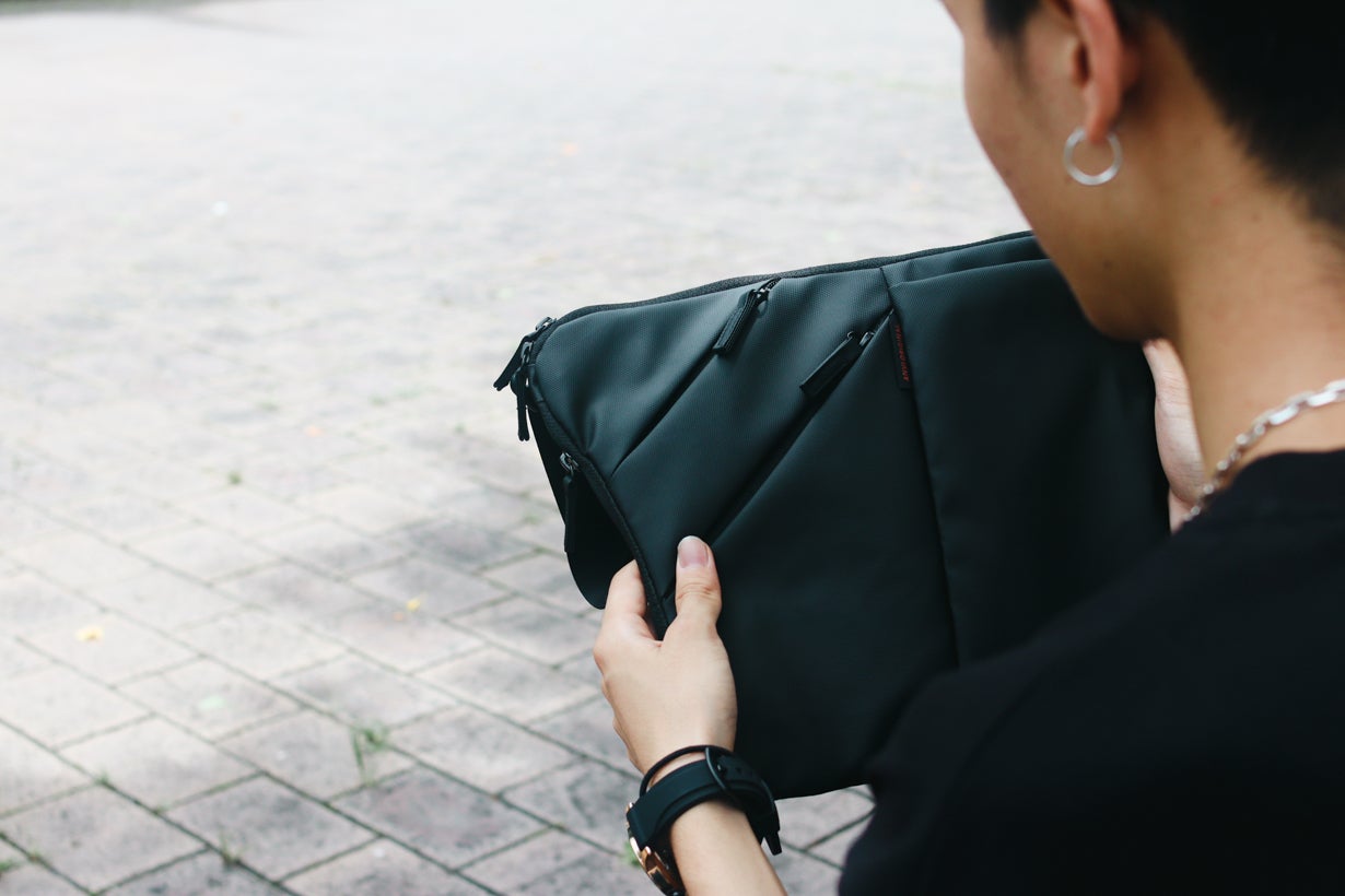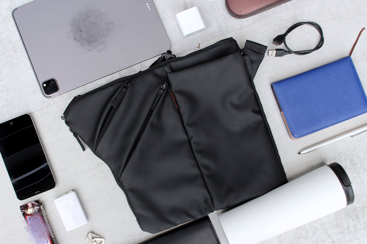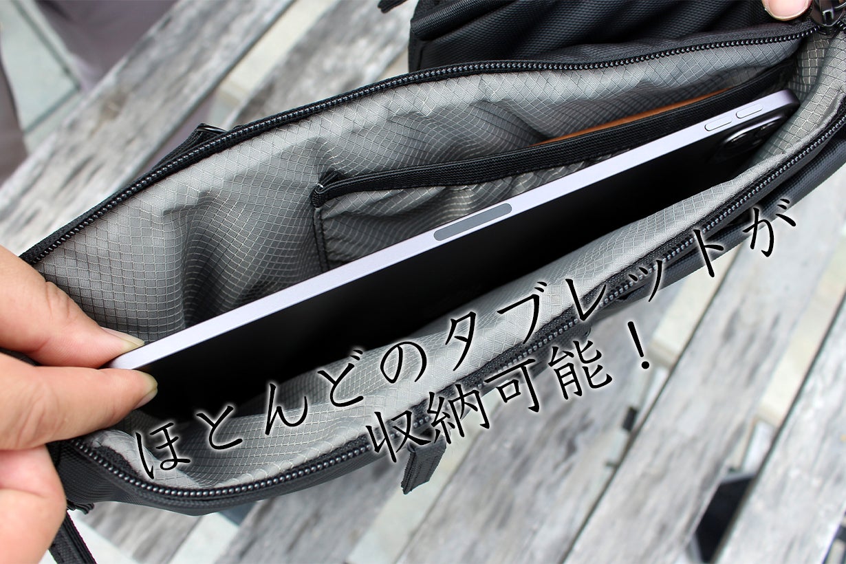 メインポケットにはタブレットなどの収納が可能。カフェやコワーキングスペースで働くノマドワーカーにとって、「毎日持ち歩くバッグにタブレット端末が収納できるか」