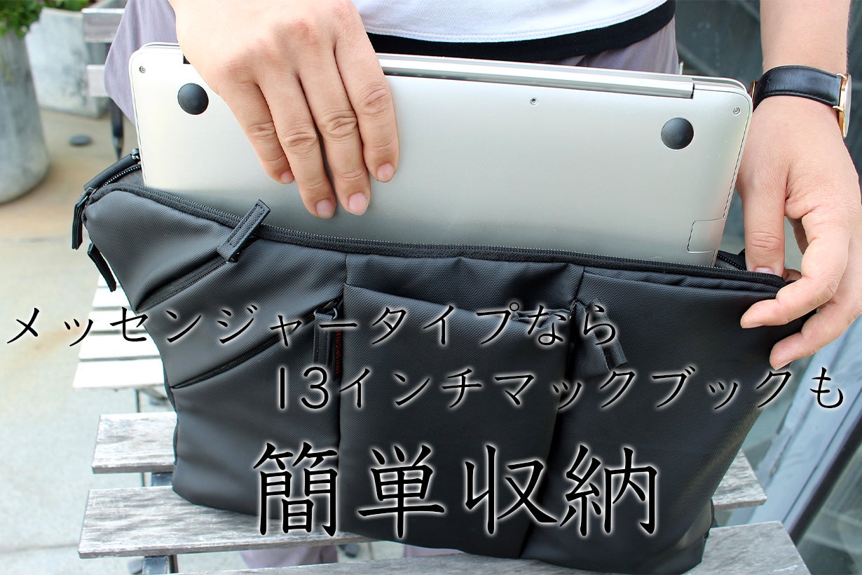 メッセンジャータイプに変えれば、13インチのマックブックも簡単に入ります。