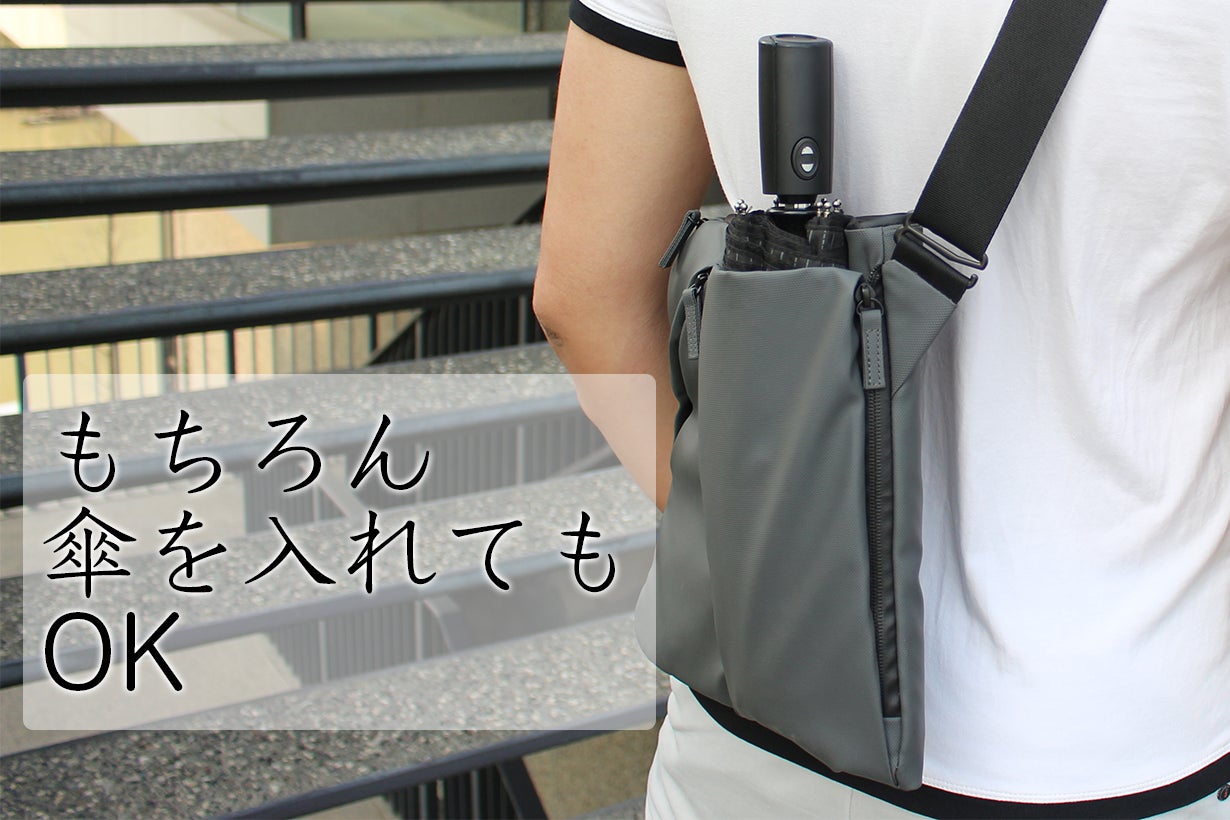 もちろん、とっさの雨にも対応できる折り畳み傘を入れるのにもぴったりです。