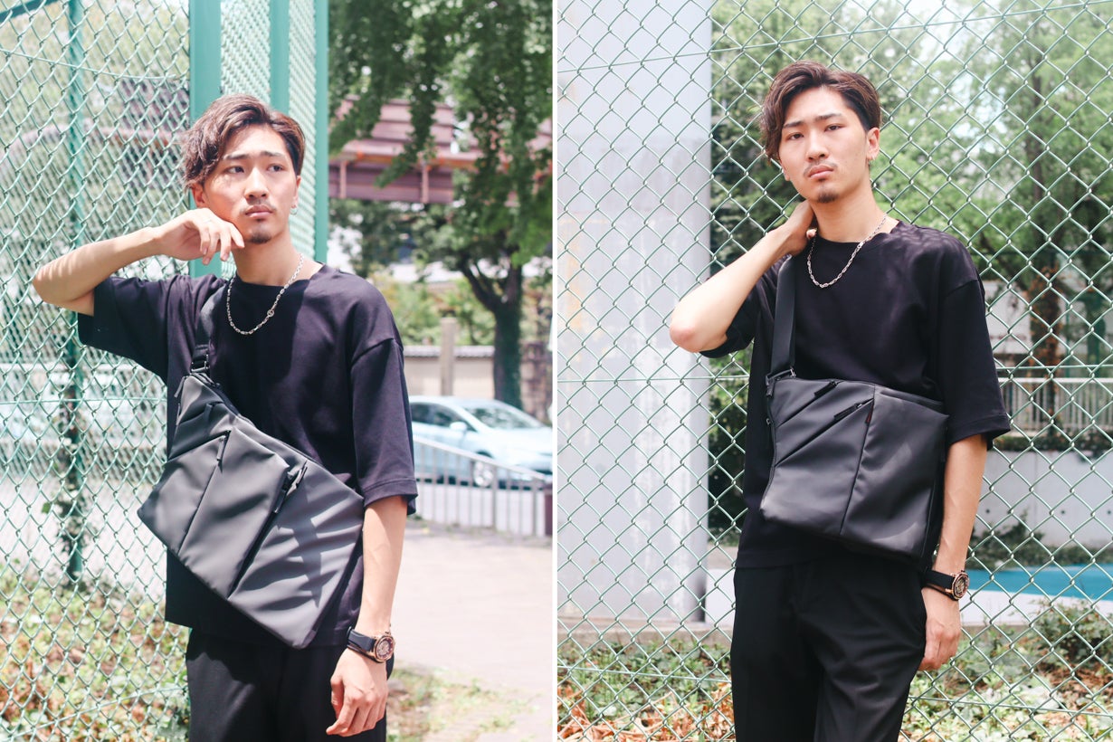 メッセンジャーバッグとスリングバッグを自在に行き来するベスティーのスタイルは、日常に起こるどんなトラブルも冷静に乗り越えられる自信を持って欲しい、という願いから。
